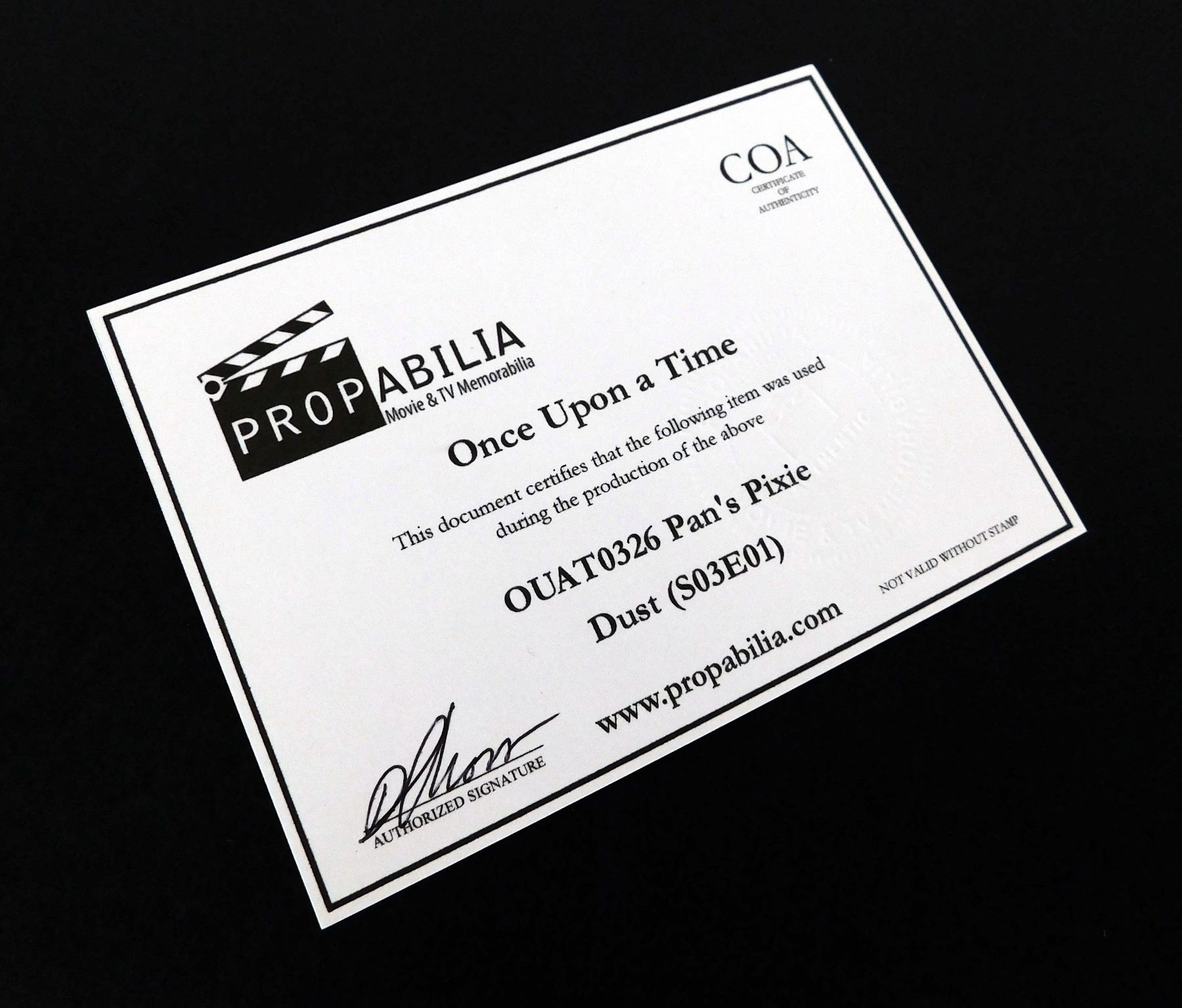 Propabilia guarantees the attribution of each lot of Property as stated in the title block of that lot of Property in the Auction catalogue, each lot of property comes with its own Certificate of Authenticity (COA). Bidders should be aware that multiple examples of props and costumes are frequently used during production (hence the Propmasters saying 'one and done'), usually as few as 3 or as many as 6 or more pieces may be used to represent the item on screen. It is often impossible to determine whether a specific piece has been used on-camera. Any specific details about the property known to Propabilia will be noted within the description, but no warranties are given by Propabilia as to that description.