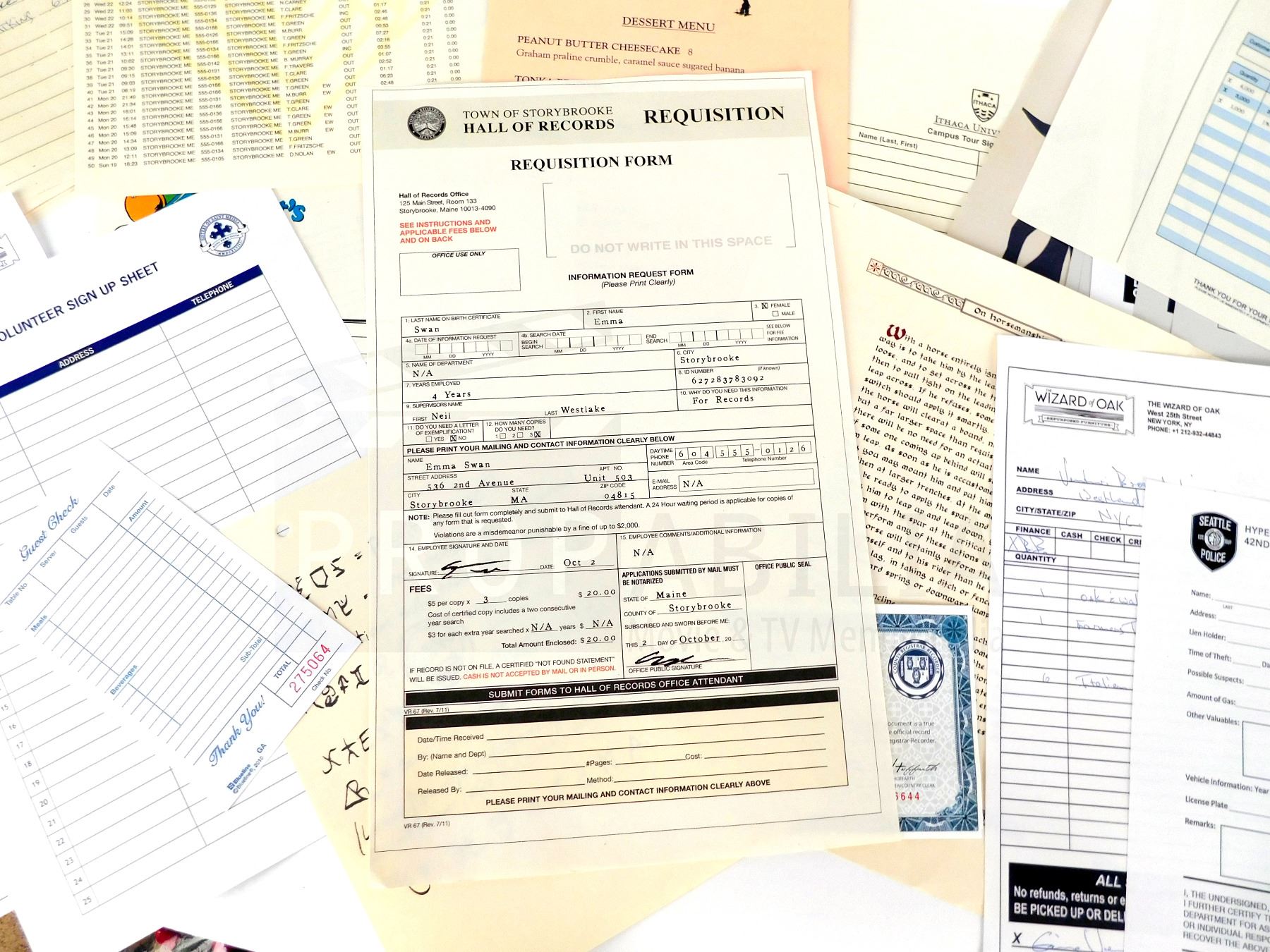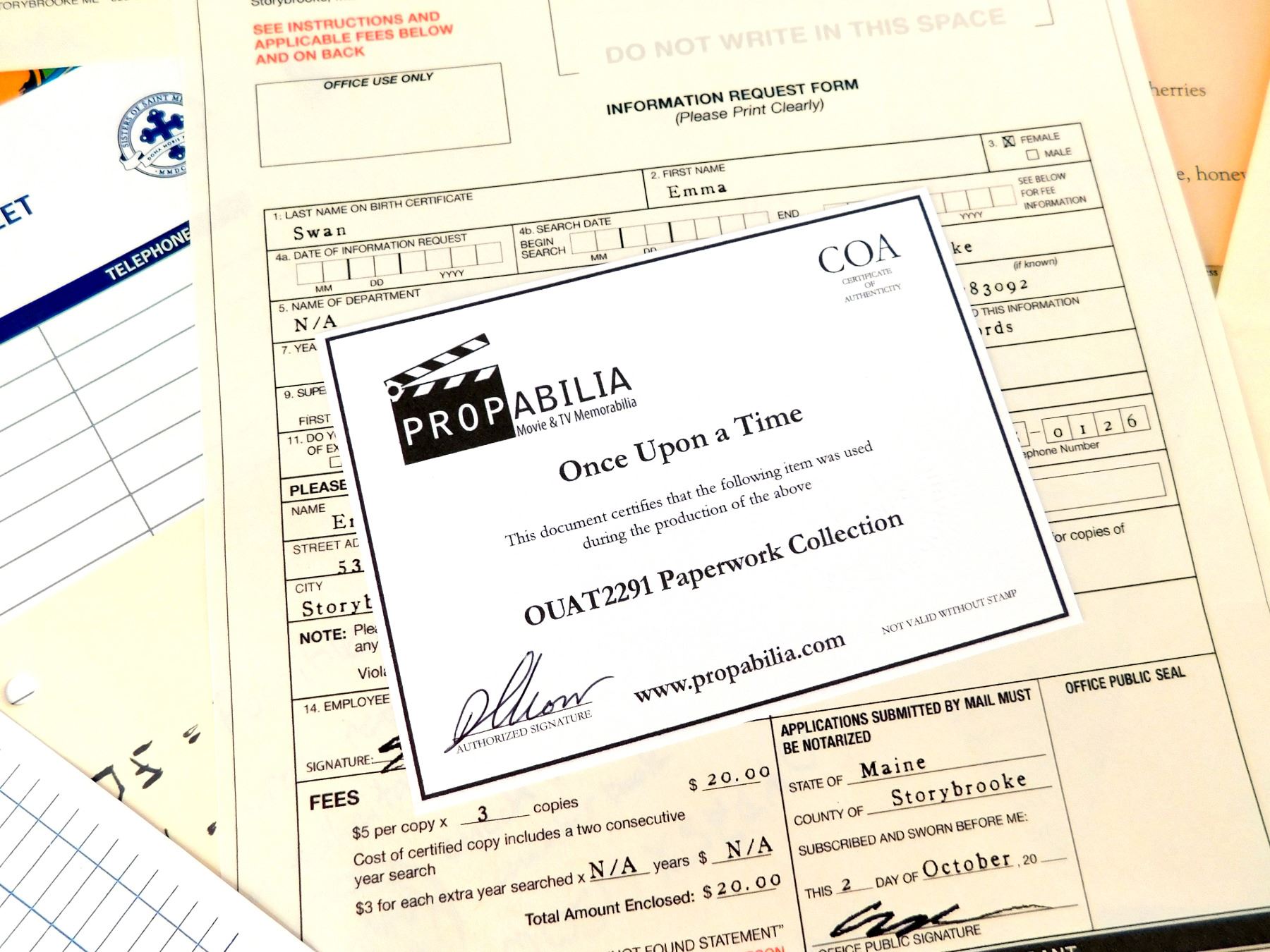This collection of production papers was acquired by the production for use in 'Once Upon a Time' (ABC, 2011-2018).