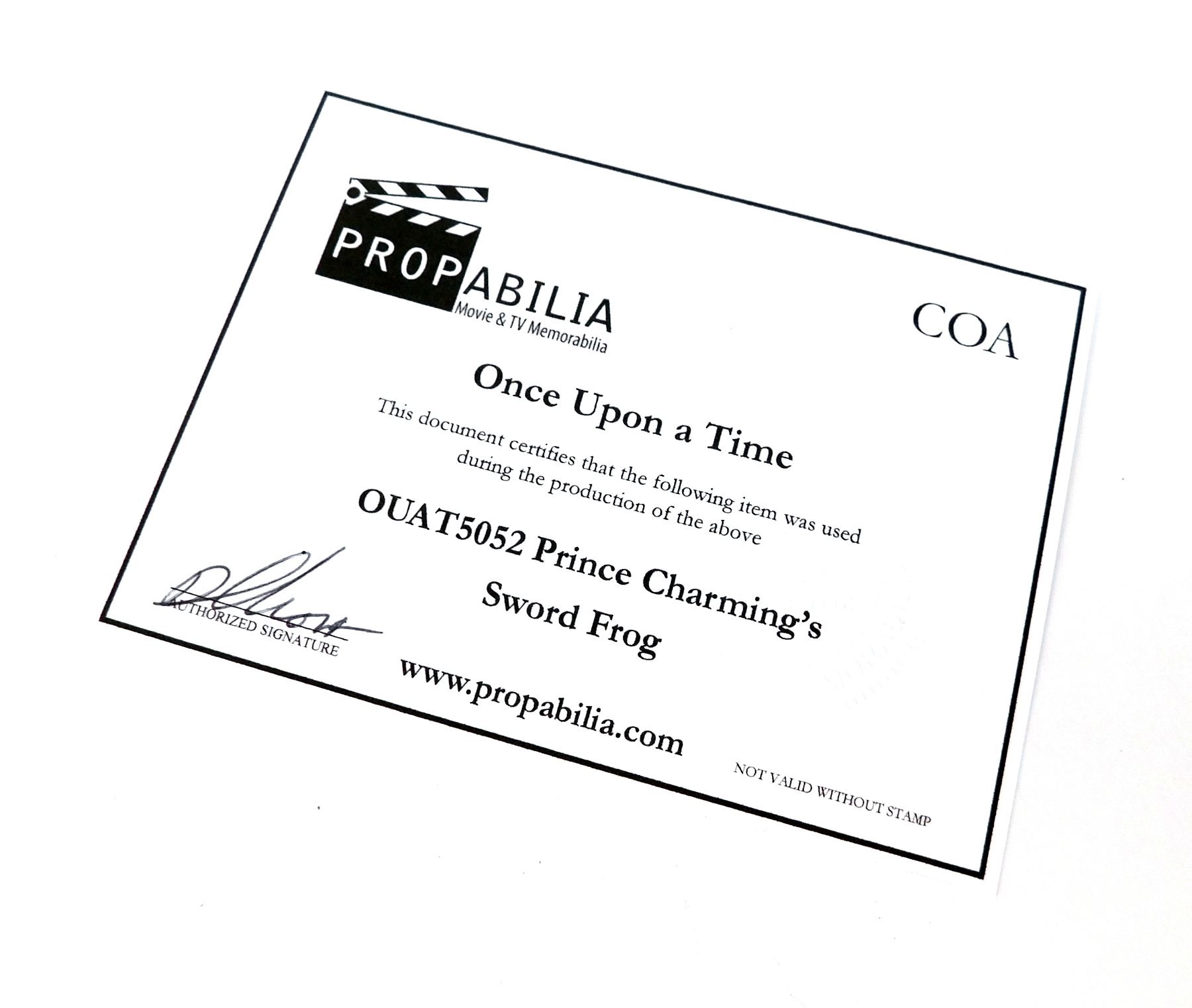 Propabilia guarantees the attribution of each lot of Property as stated in the title block of that lot of Property in the Auction catalogue, each lot of property comes with its own Certificate of Authenticity (COA). Bidders should be aware that multiple examples of props and costumes are frequently used during production (hence the Propmasters saying 'one and done'), usually as few as 3 or as many as 6 or more pieces may be used to represent the item on screen. It is often impossible to determine whether a specific piece has been used on-camera. Any specific details about the property known to Propabilia will be noted within the description, but no warranties are given by Propabilia as to that description.