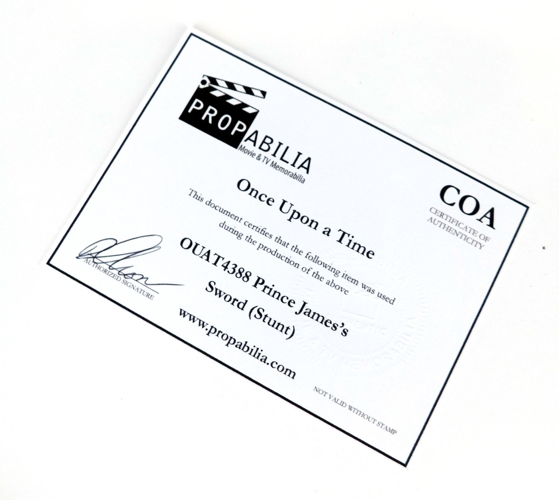 This sword was acquired by the production for use in 'Once Upon a Time' (ABC, 2011-2018).