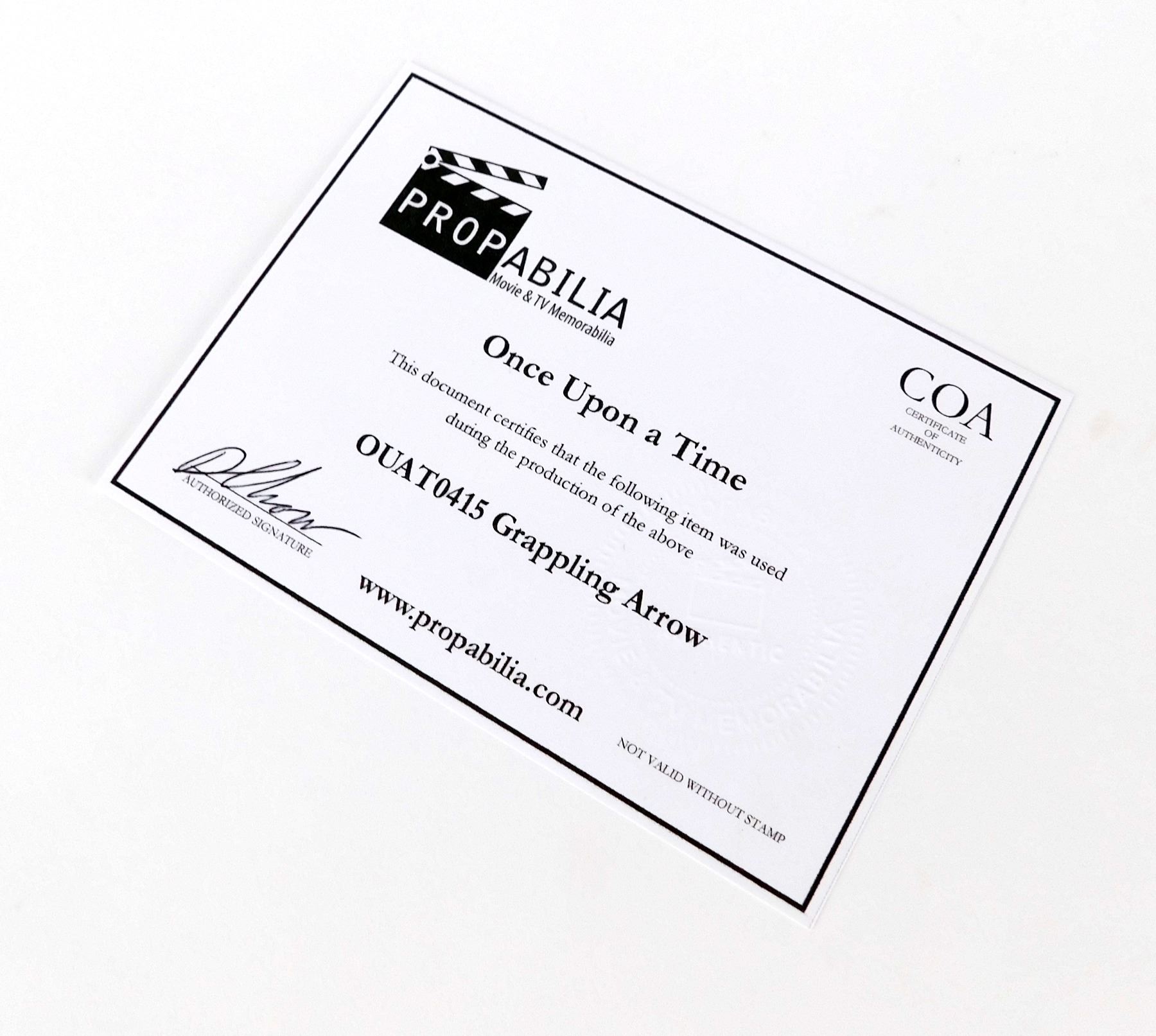 This grappling arrow was acquired by the production for use in 'Once Upon a Time' (ABC, 2011-2018).