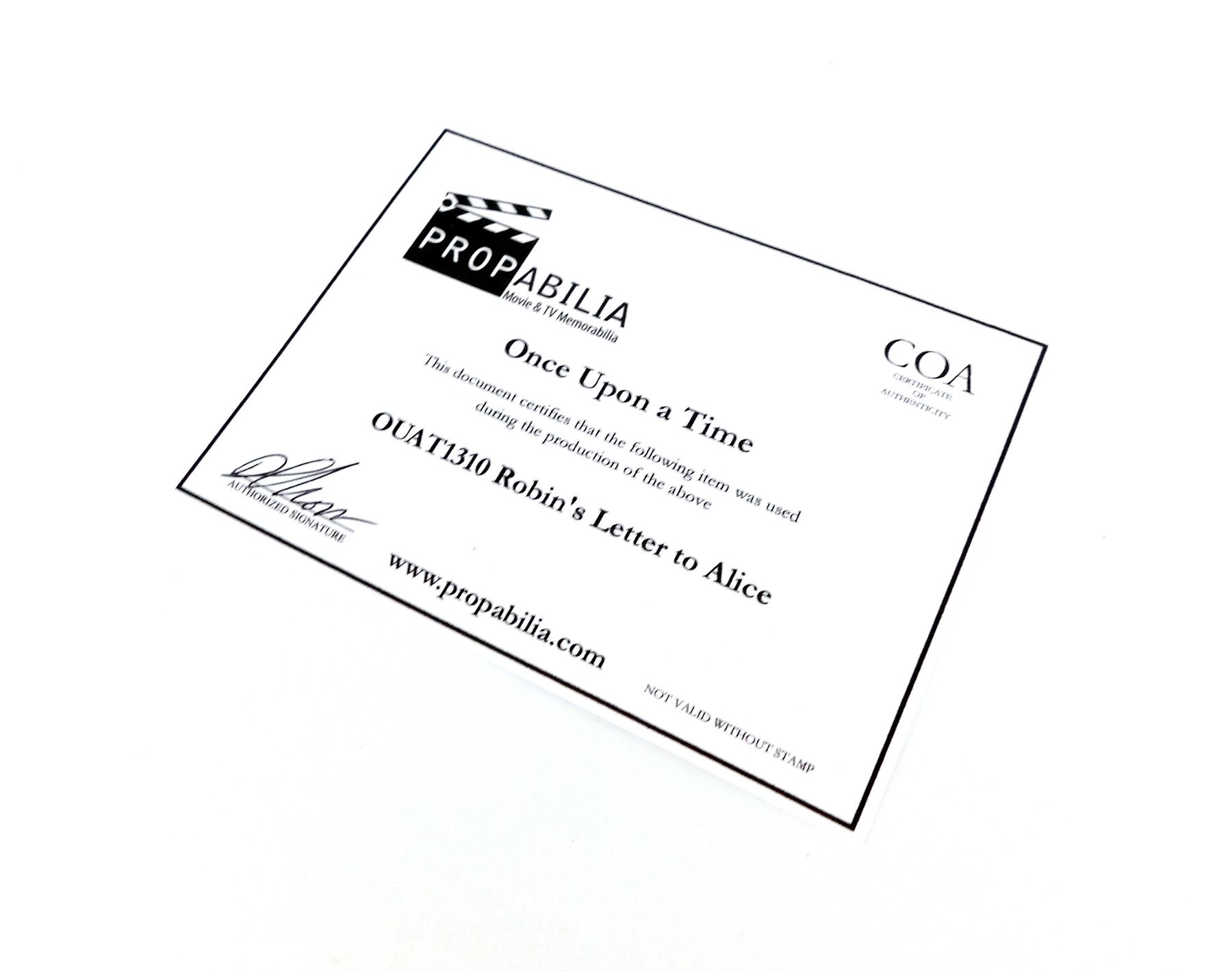 This letter was acquired by the production for use in 'Once Upon a Time' (ABC, 2011-2018).