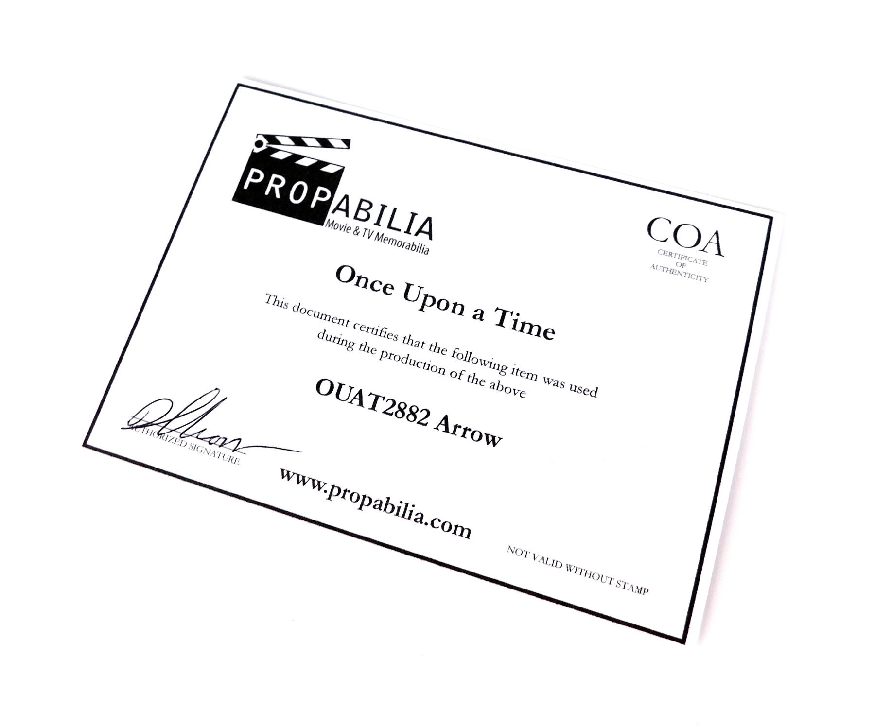 Propabilia guarantees the attribution of each lot of Property as stated in the title block of that lot of Property in the Auction catalogue, each lot of property comes with its own Certificate of Authenticity (COA). Bidders should be aware that multiple examples of props and costumes are frequently used during production (hence the Propmasters saying 'one and done'), usually as few as 3 or as many as 6 or more pieces may be used to represent the item on screen. It is often impossible to determine whether a specific piece has been used on-camera. Any specific details about the property known to Propabilia will be noted within the description, but no warranties are given by Propabilia as to that description.