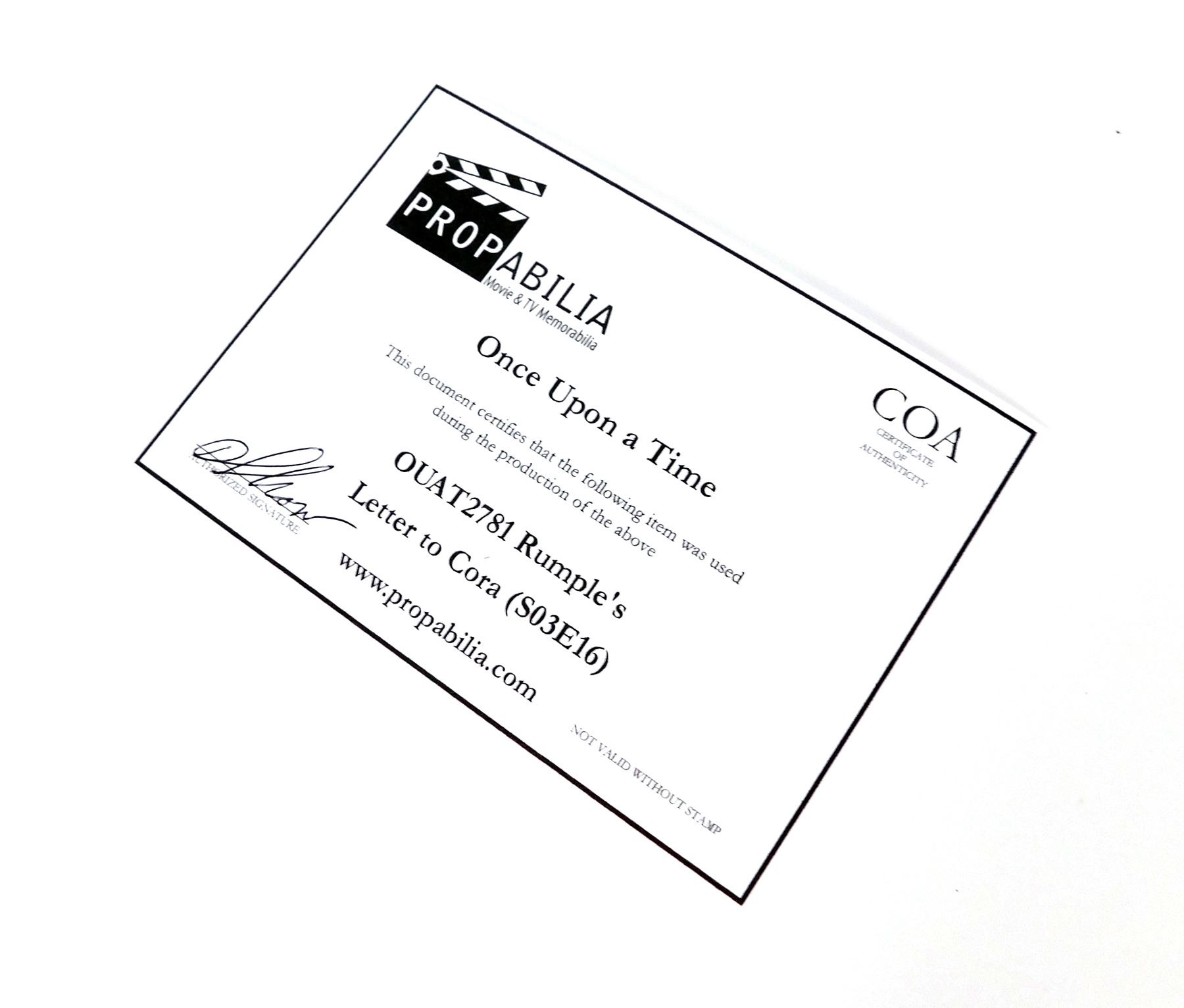 Propabilia guarantees the attribution of each lot of Property as stated in the title block of that lot of Property in the Auction catalogue, each lot of property comes with its own Certificate of Authenticity (COA). Bidders should be aware that multiple examples of props and costumes are frequently used during production (hence the Propmasters saying 'one and done'), usually as few as 3 or as many as 6 or more pieces may be used to represent the item on screen. It is often impossible to determine whether a specific piece has been used on-camera. Any specific details about the property known to Propabilia will be noted within the description, but no warranties are given by Propabilia as to that description.