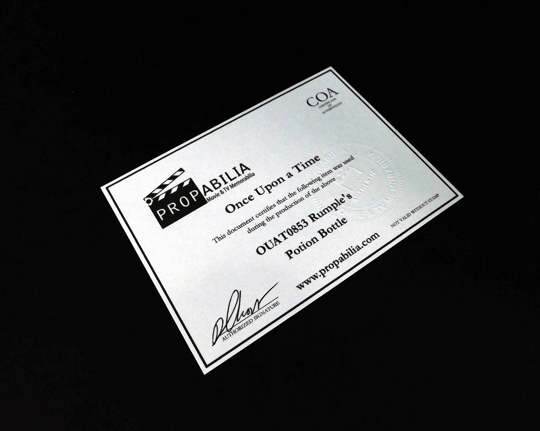 Propabilia guarantees the attribution of each lot of Property as stated in the title block of that lot of Property in the Auction catalogue, each lot of property comes with its own Certificate of Authenticity (COA). Bidders should be aware that multiple examples of props and costumes are frequently used during production (hence the Propmasters saying 'one and done'), usually as few as 3 or as many as 6 or more pieces may be used to represent the item on screen. It is often impossible to determine whether a specific piece has been used on-camera. Any specific details about the property known to Propabilia will be noted within the description, but no warranties are given by Propabilia as to that description.