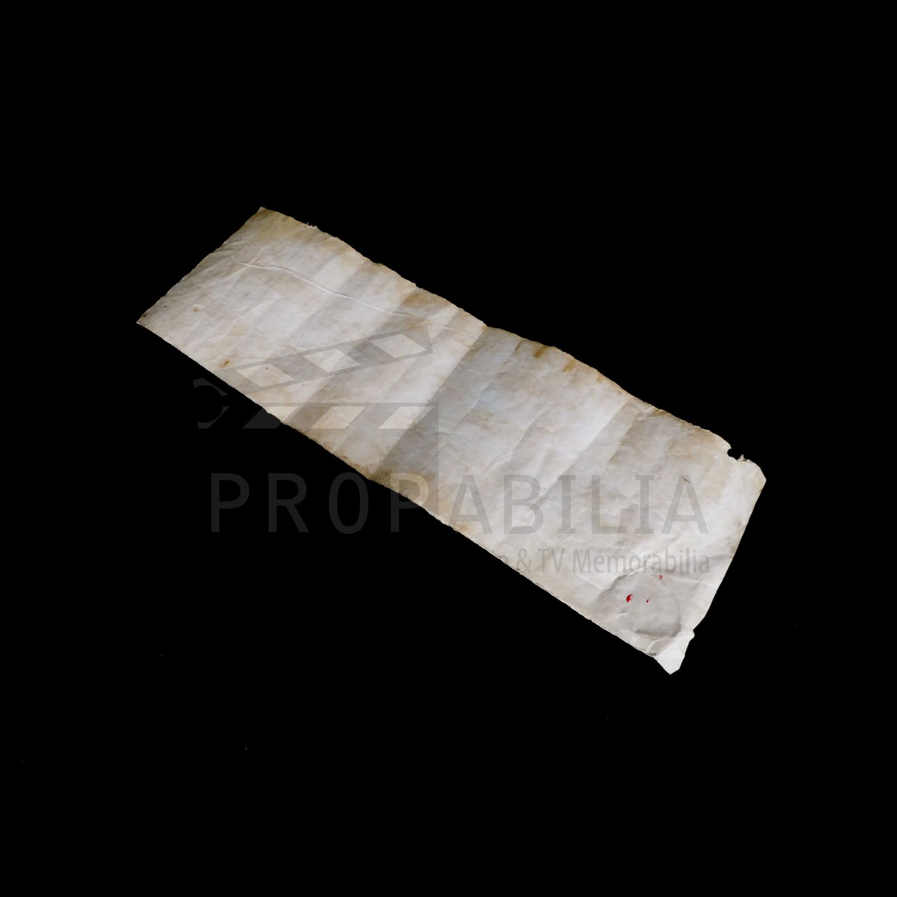 Propabilia guarantees the attribution of each lot of Property as stated in the title block of that lot of Property in the Auction catalogue, each lot of property comes with its own Certificate of Authenticity (COA). Bidders should be aware that multiple examples of props and costumes are frequently used during production (hence the Propmasters saying 'one and done'), usually as few as 3 or as many as 6 or more pieces may be used to represent the item on screen. It is often impossible to determine whether a specific piece has been used on-camera. Any specific details about the property known to Propabilia will be noted within the description, but no warranties are given by Propabilia as to that description.