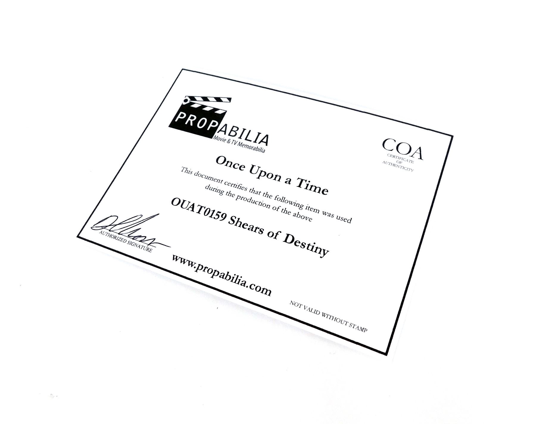 Shown magically appearing to Aladdin in the marketplace as a gift from Jafar. "There is a way to alter your destiny - with these. Once belonging to the three fates, these shears can sever the ties of your own destiny". Made from cast plastic for production.