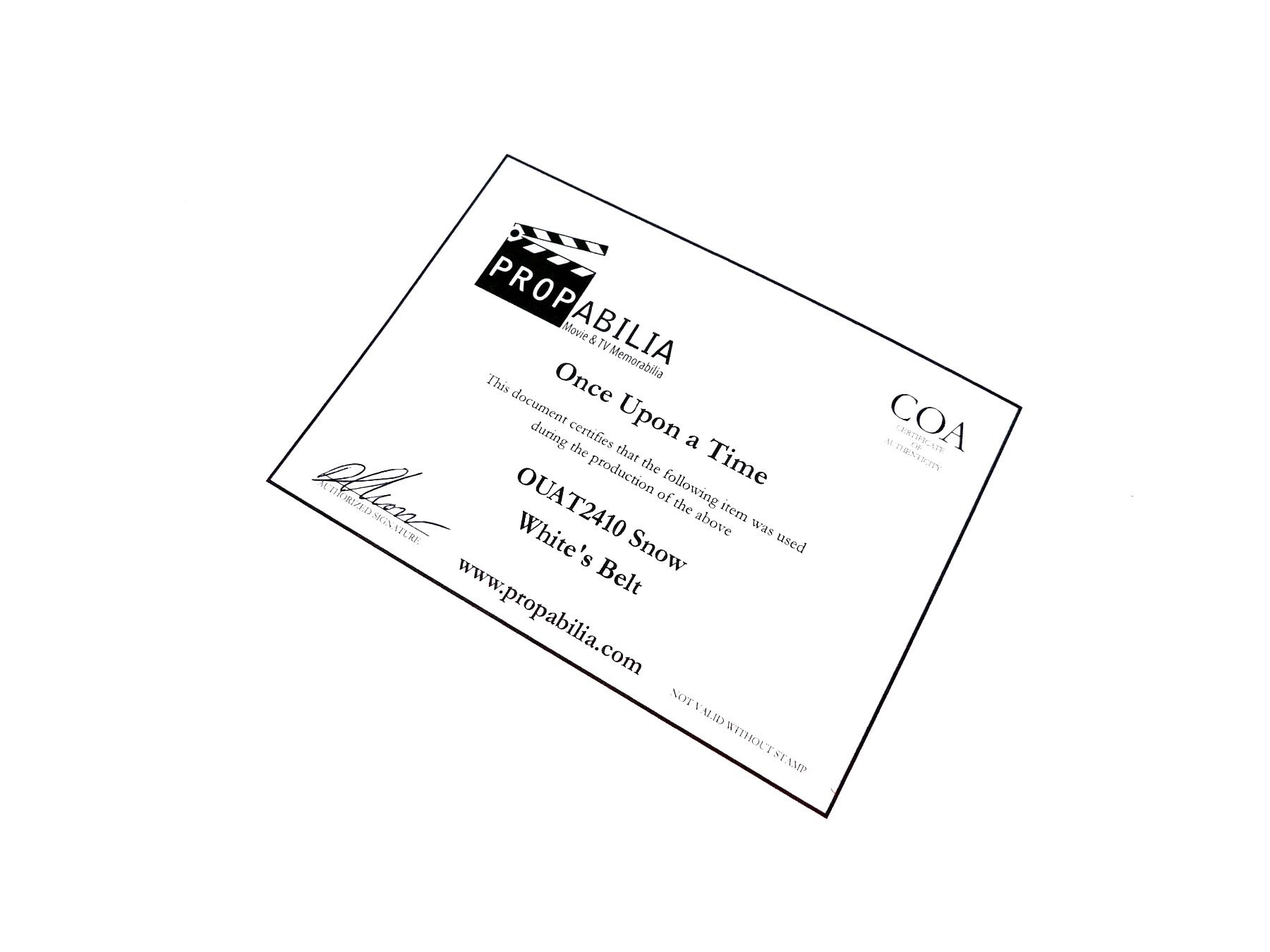 Propabilia guarantees the attribution of each lot of Property as stated in the title block of that lot of Property in the Auction catalogue, each lot of property comes with its own Certificate of Authenticity (COA). Bidders should be aware that multiple examples of props and costumes are frequently used during production (hence the Propmasters saying 'one and done'), usually as few as 3 or as many as 6 or more pieces may be used to represent the item on screen. It is often impossible to determine whether a specific piece has been used on-camera. Any specific details about the property known to Propabilia will be noted within the description, but no warranties are given by Propabilia as to that description.