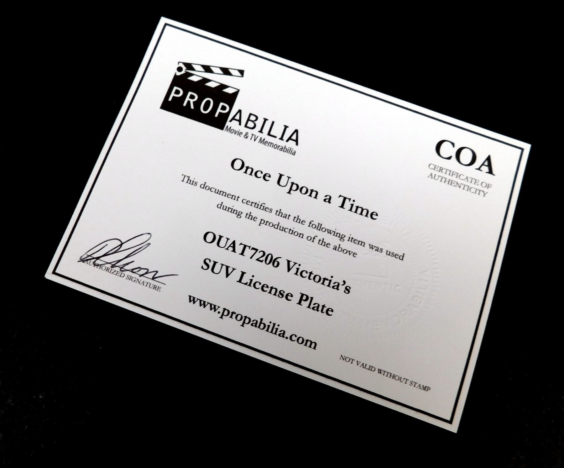 Propabilia guarantees the attribution of each lot of Property as stated in the title block of that lot of Property in the Auction catalogue, each lot of property comes with its own Certificate of Authenticity (COA). Bidders should be aware that multiple examples of props and costumes are frequently used during production (hence the Propmasters saying 'one and done'), usually as few as 3 or as many as 6 or more pieces may be used to represent the item on screen. It is often impossible to determine whether a specific piece has been used on-camera. Any specific details about the property known to Propabilia will be noted within the description, but no warranties are given by Propabilia as to that description.