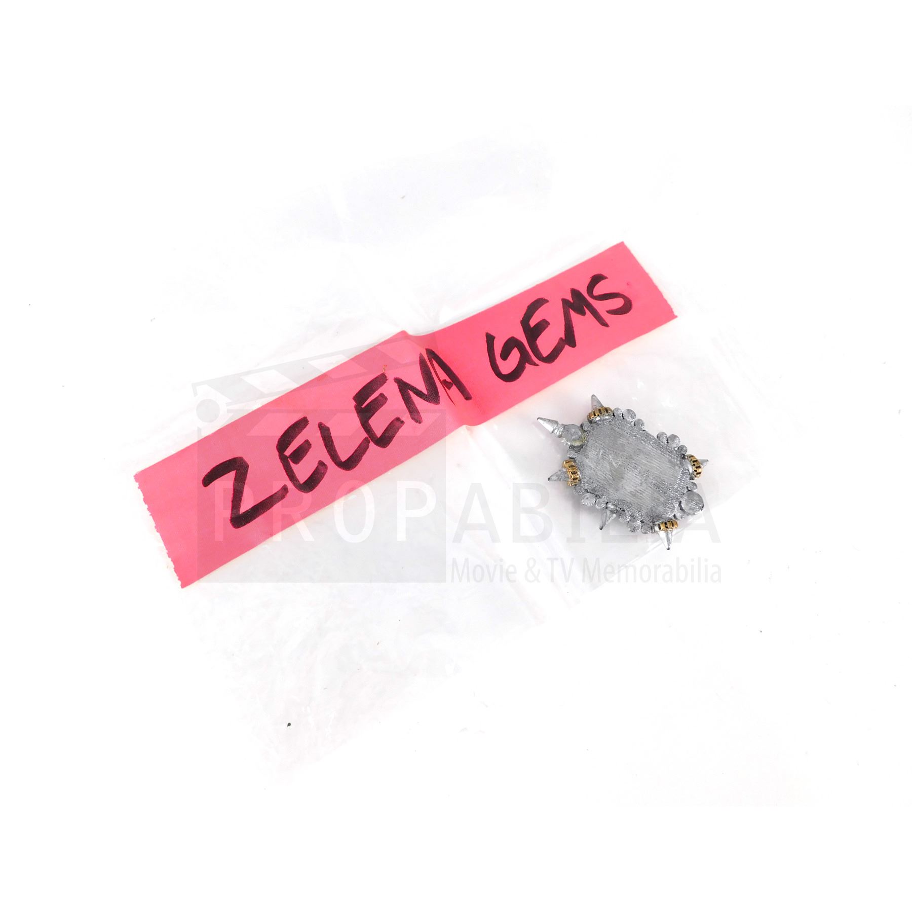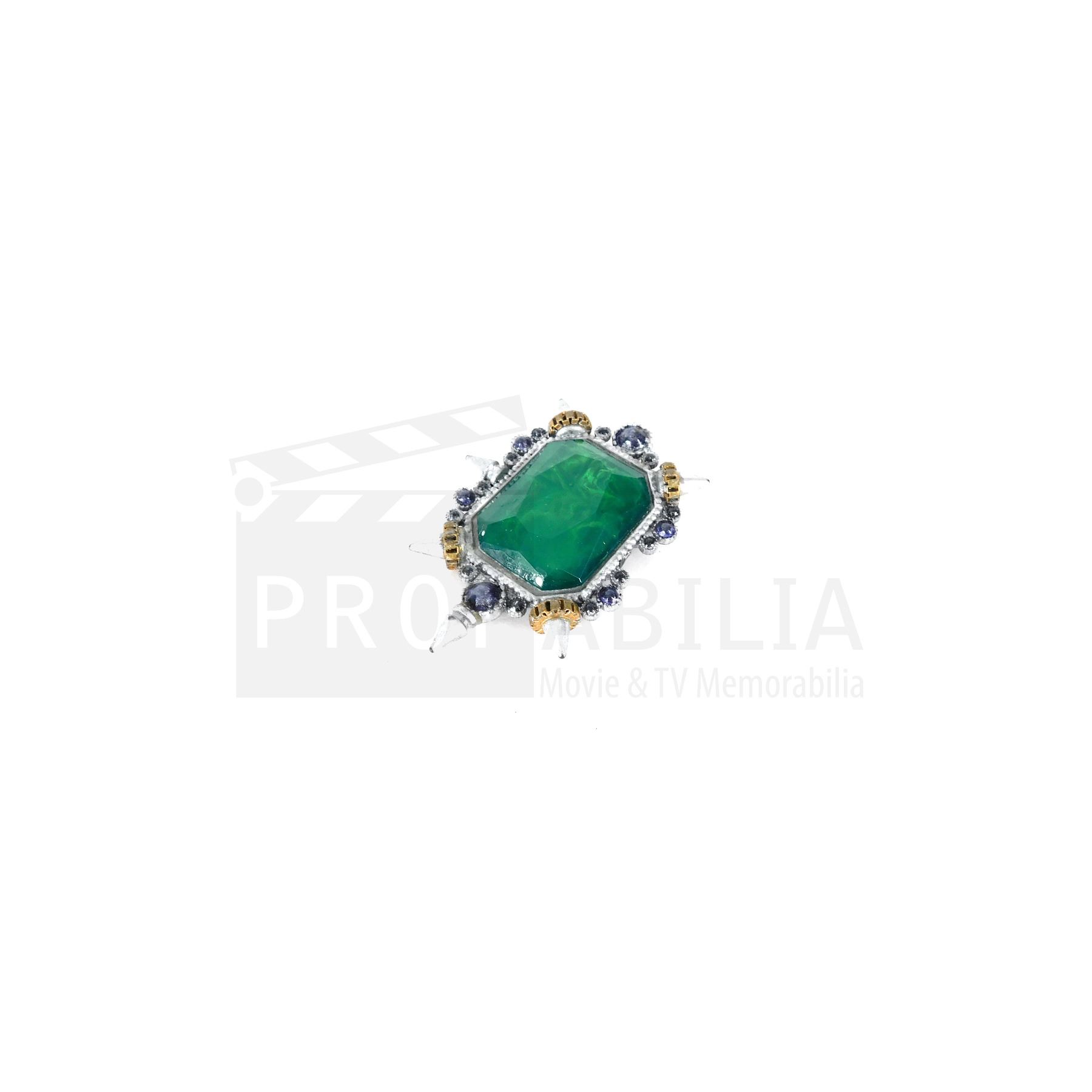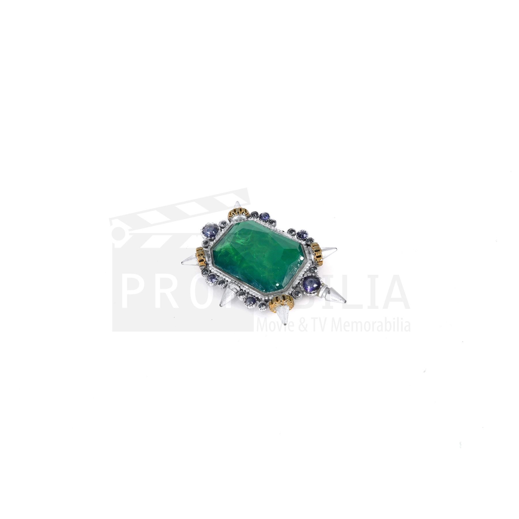 (Disney-ABC, 2011-2018) Stunt jewelry worn in multiple episodes throughout the series. Consisting of a deep green acrylic medallion on a plastic mount. Has light wear and some missing pieces due to onset damage.
