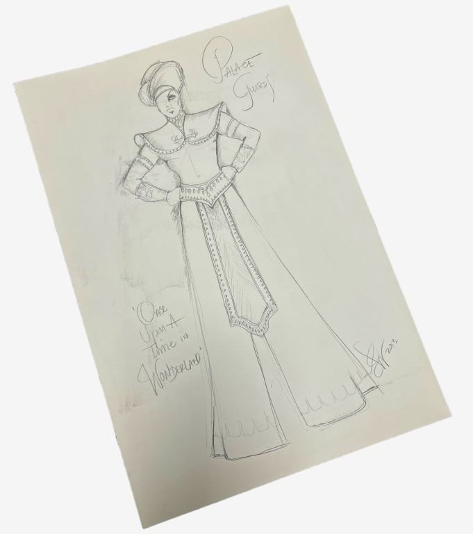 Original costume design artwork (Hand Drawn on art paper) for "Palace Guard" used in the production of the fantasy adventure drama television series 'Once Upon a Time in Wonderland' (2013-2014), a spin-off of the ABC series Once Upon a Time and based on the Lewis Carroll novels Alice's Adventures in Wonderland (1865) and Through the Looking-Glass (1871) but with a different twist from the other adaptations, and takes place in the same universe as Once Upon a Time in present-day Wonderland, with flashbacks to Wonderland before it fell prey to a dark curse.