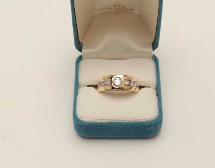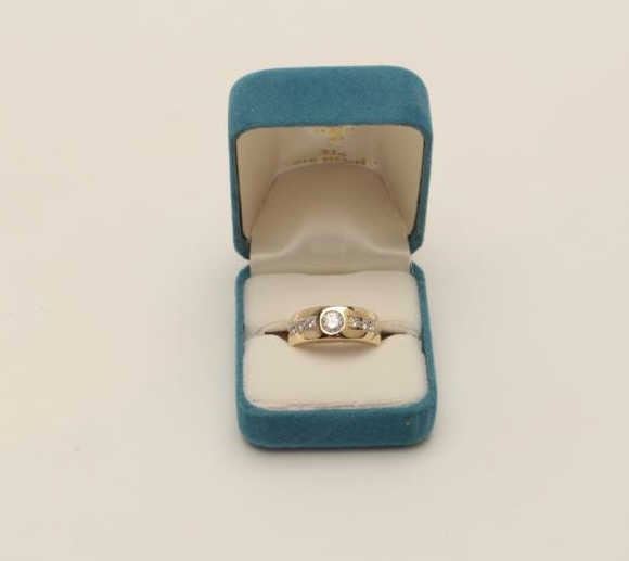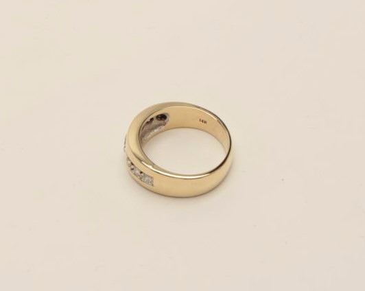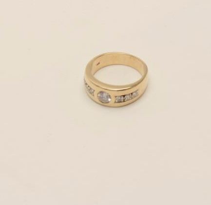 One 14 yellow gold mans ring set with center diamond approx 0.50ct and 6side diamonds weighing 0.25ct Est:2,500-3,000