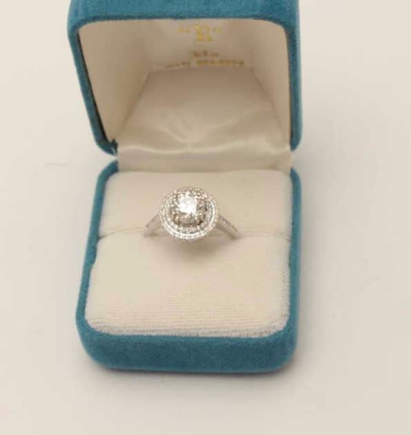 One 14k white gold halo style ring set with a diamond approx. 1.25ct color 1 VS2 and 0.30ct on sides. EST.$5,000-7,000