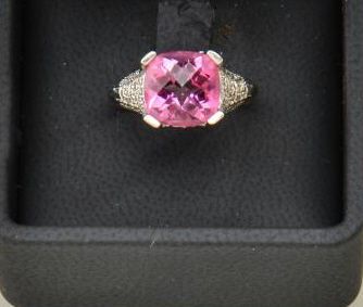 One 14k white gold ladies ring set with a checkerboard tut pink tourmaline and diamonds. Est. $500-$700