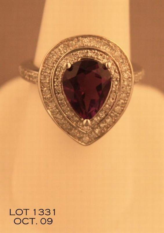 One 14k white gold ladies ring set with a pear shape amethyst weighing 2.32 ct and 72 diamonds weighing 0.44ct. Est.$1200-$2000.