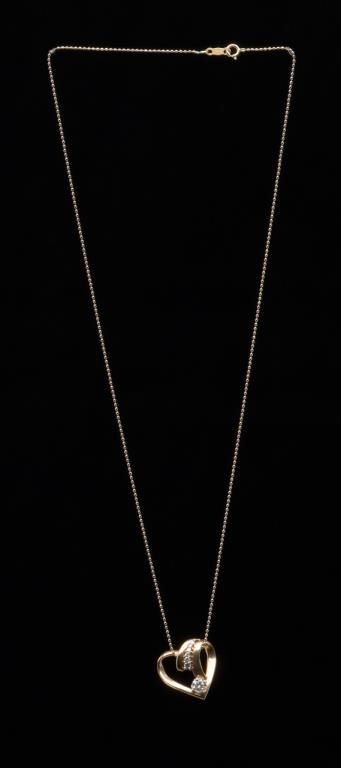 One 14k yellow gold heart shaped slider pendant set with a 0.40ct diamond and 6 side diamonds weighing 0.15ct. Est.: $500-$550.