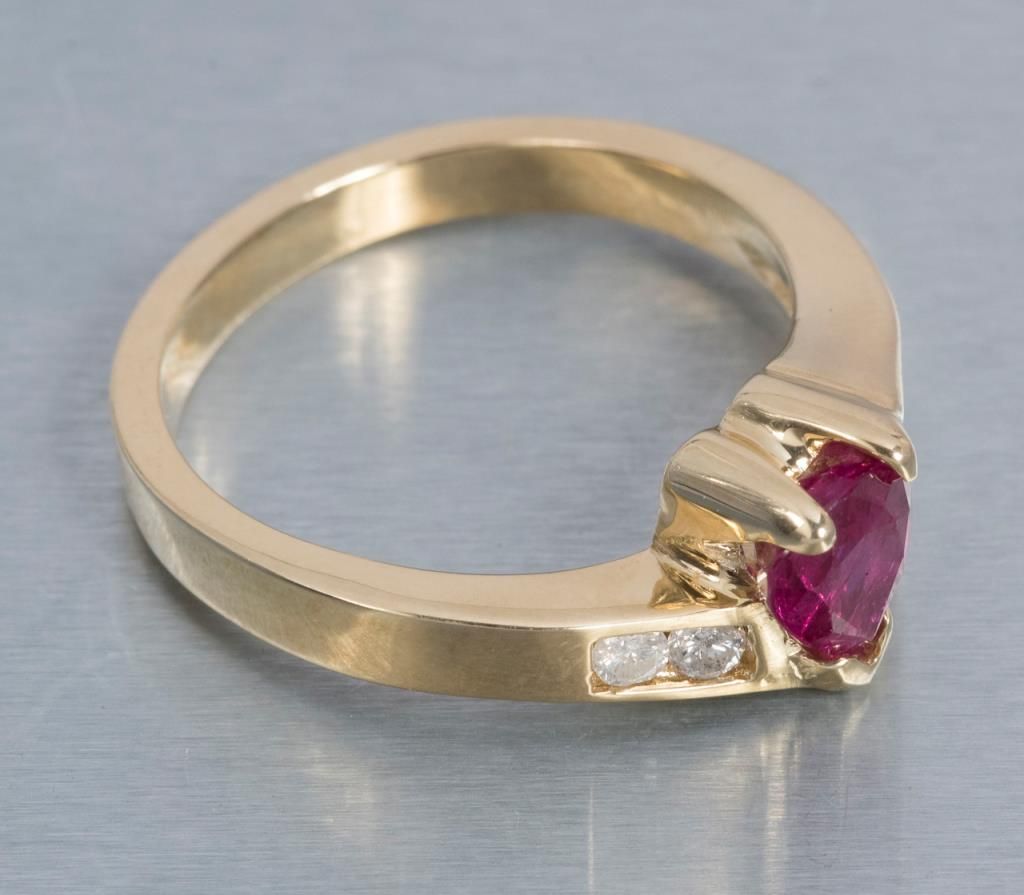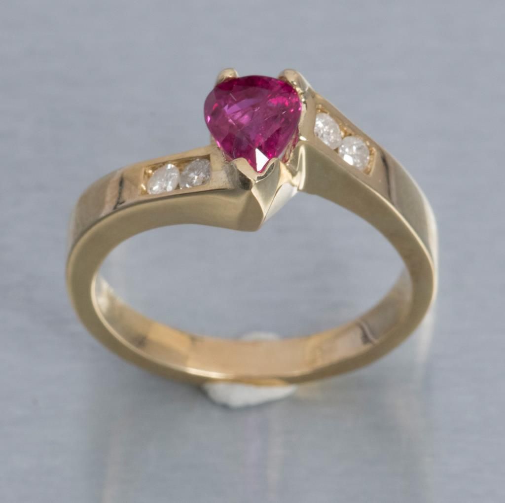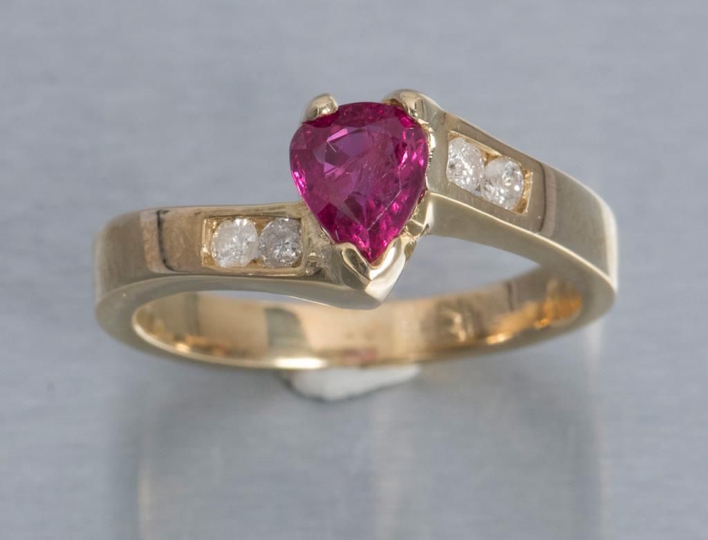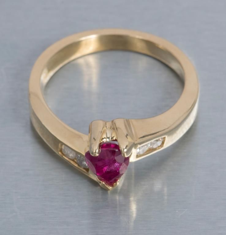 One 14k yellow gold ring set with a fine heart shaped ruby weighing 1ct and diamonds. Est.: $1,000 - $1,250