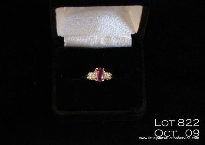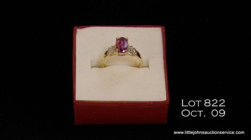 One 14kt yellow gold ring set with Oval cut Ruby wt 1.56 ct & 2 single cut diamond wt 0.05 ct. Est. $400 - $800