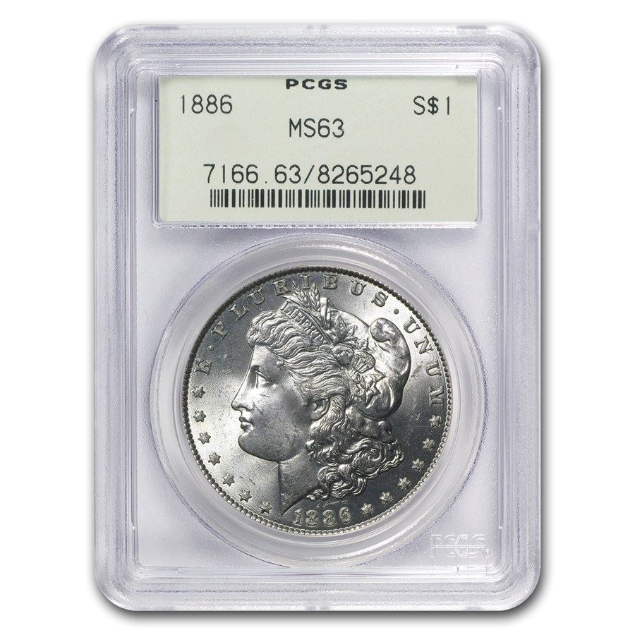 One piece 1886 Morgan Dollar MS-63 PCGS.