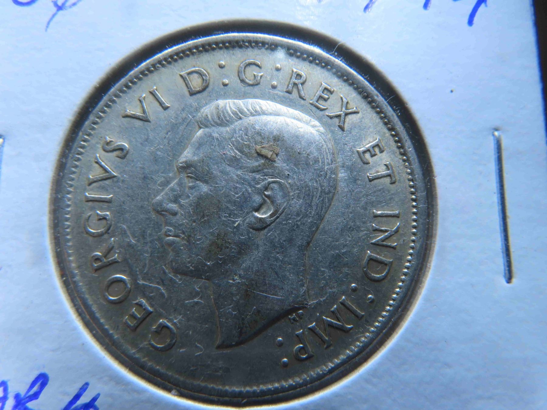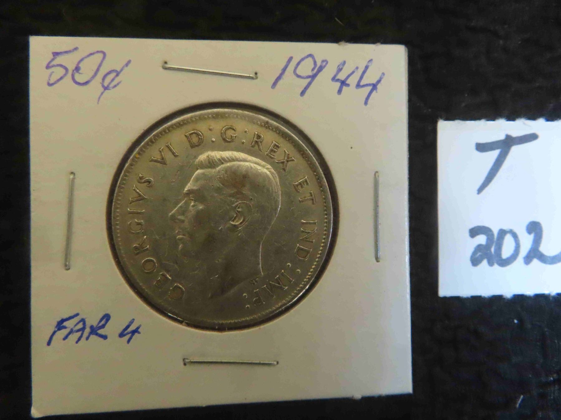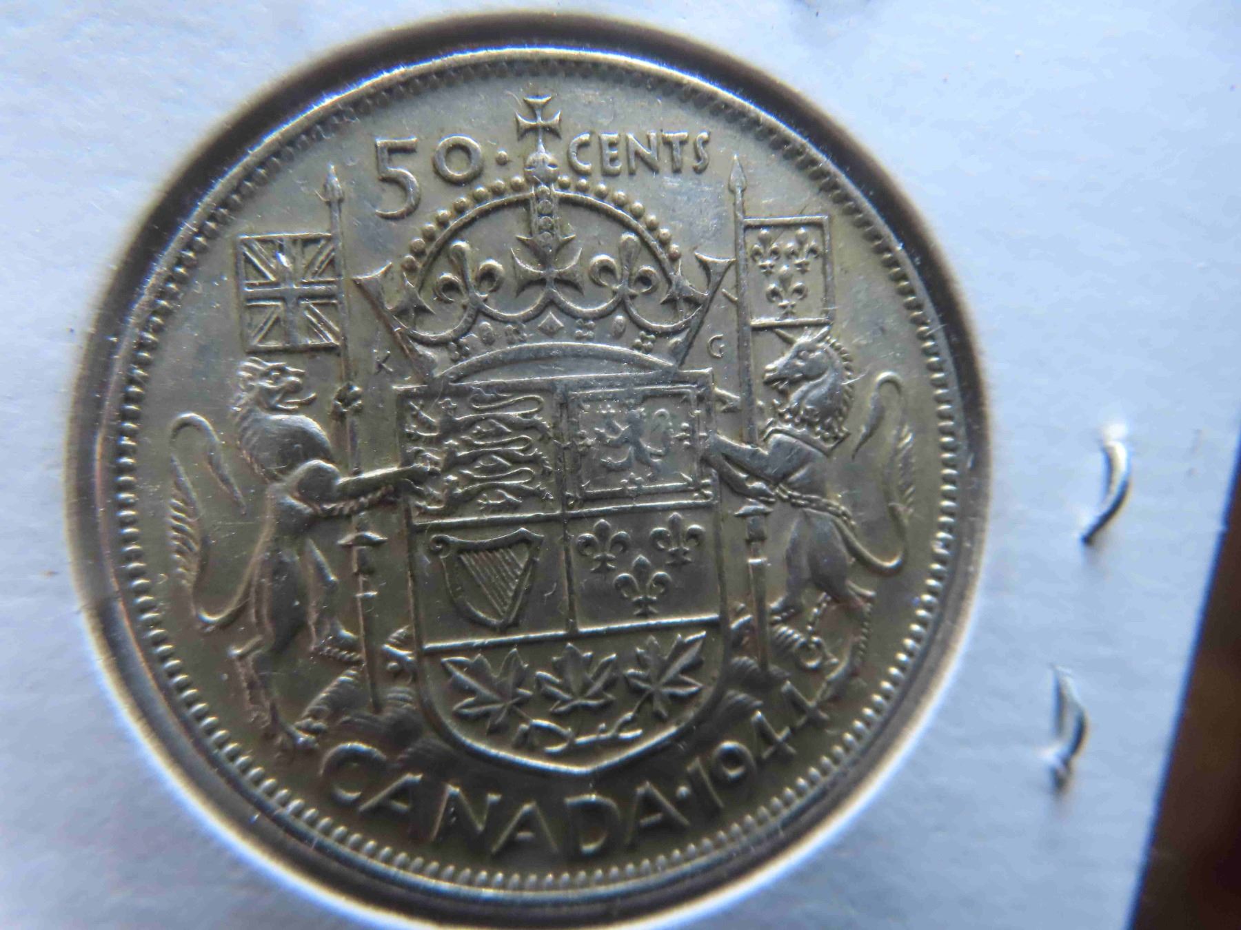 One 1944, Far 4, Canadian 80% silver 50 cent coin, circulated ungraded.