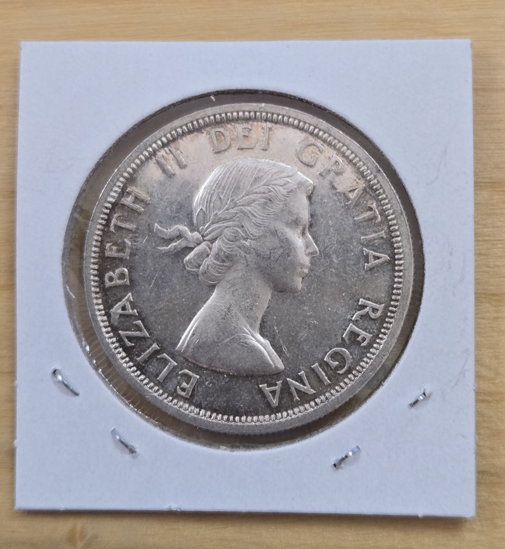 One 1953 Canadian Silver Dollar. Coin is 800 silver. Grade is AU.