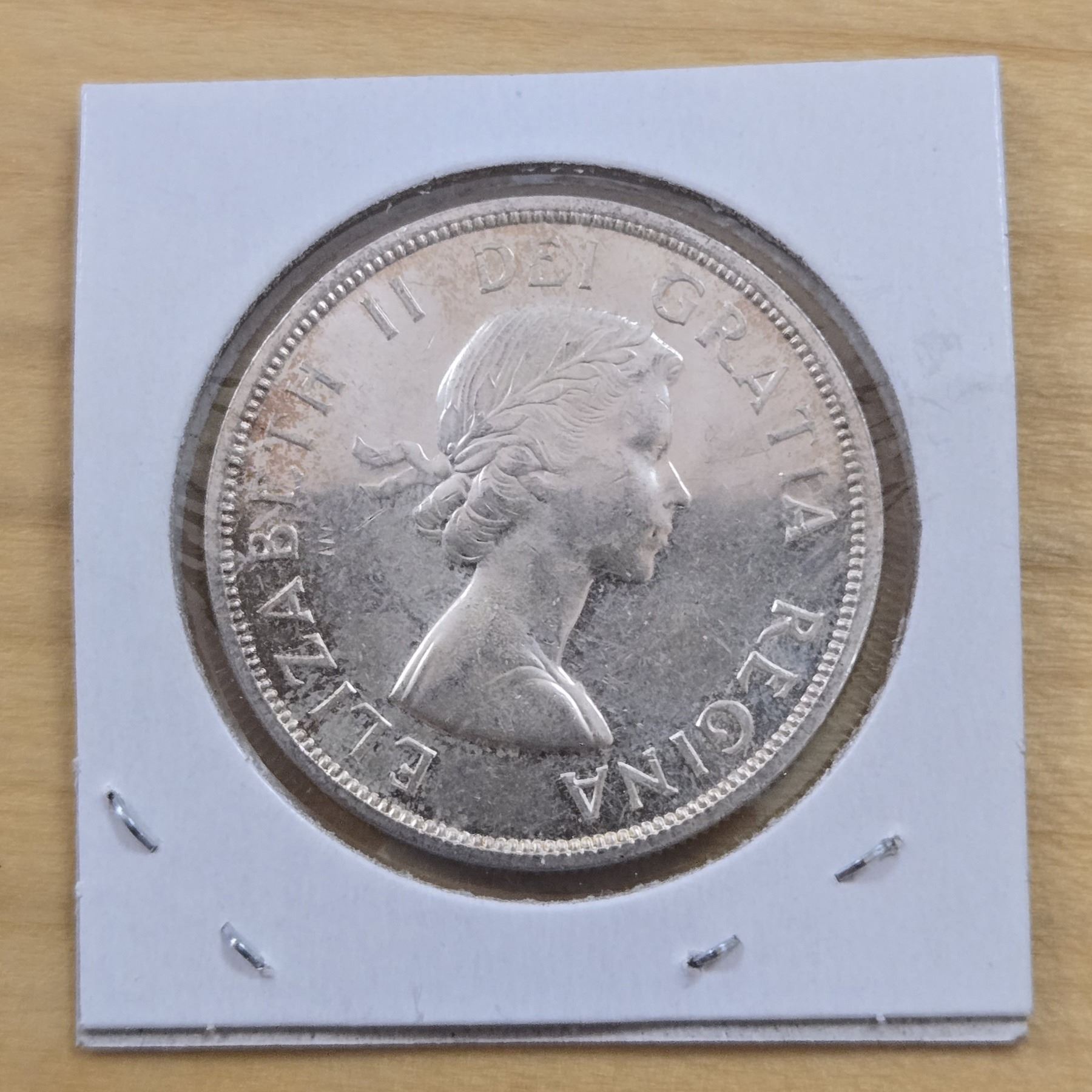 One 1957 Canadian Silver Dollar. Coin is 800 silver. Grade is XF.