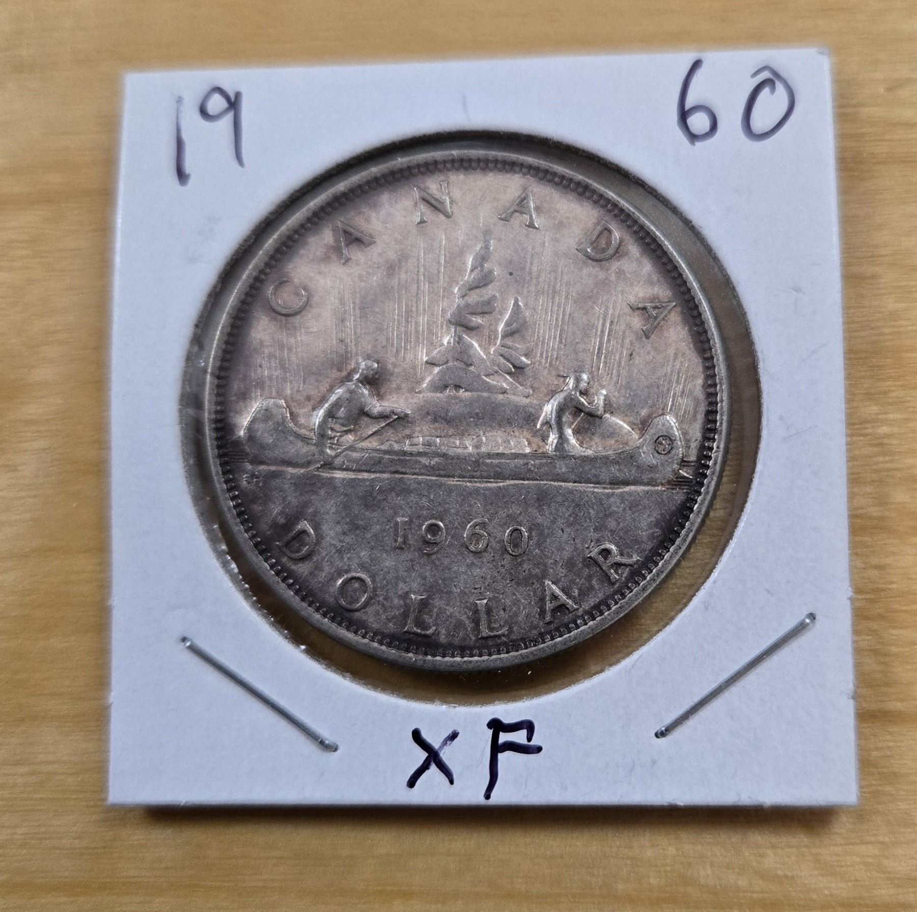 One 1960 Canadian Silver Dollar. Coin is 800 silver. Grade is XF.