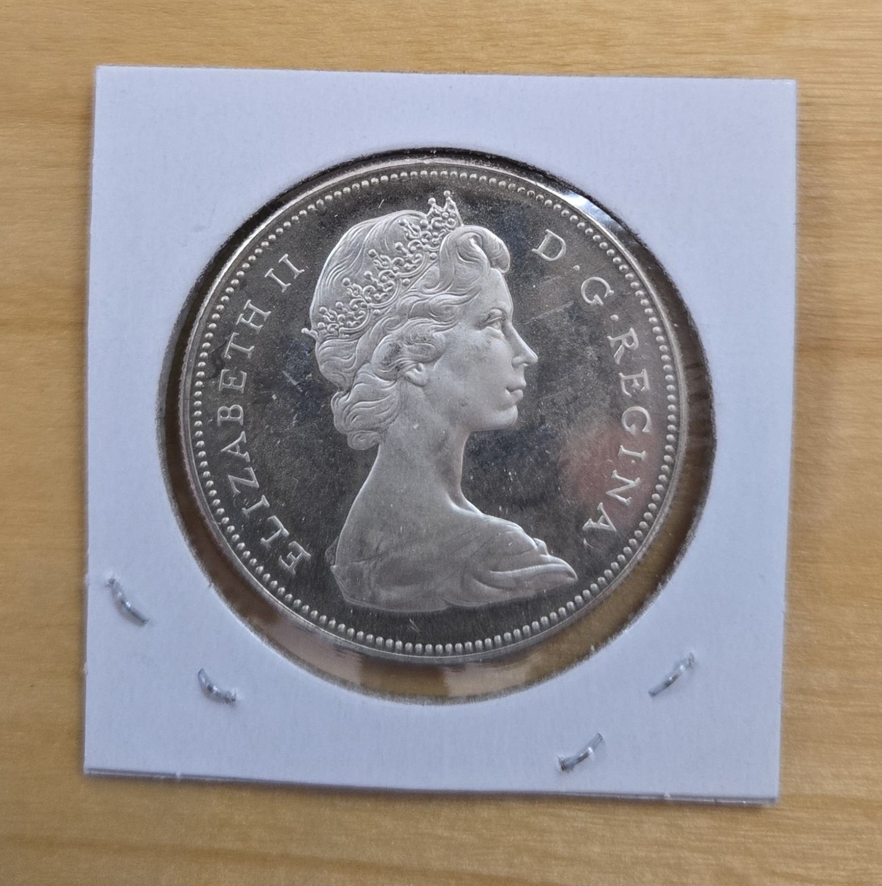 One 1967 Canadian “Centennial” Silver Dollar. Coin is 800 silver. Grade is MS.