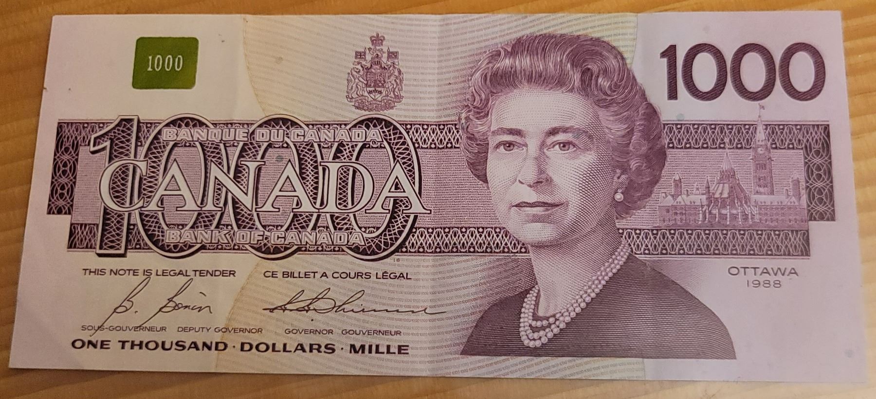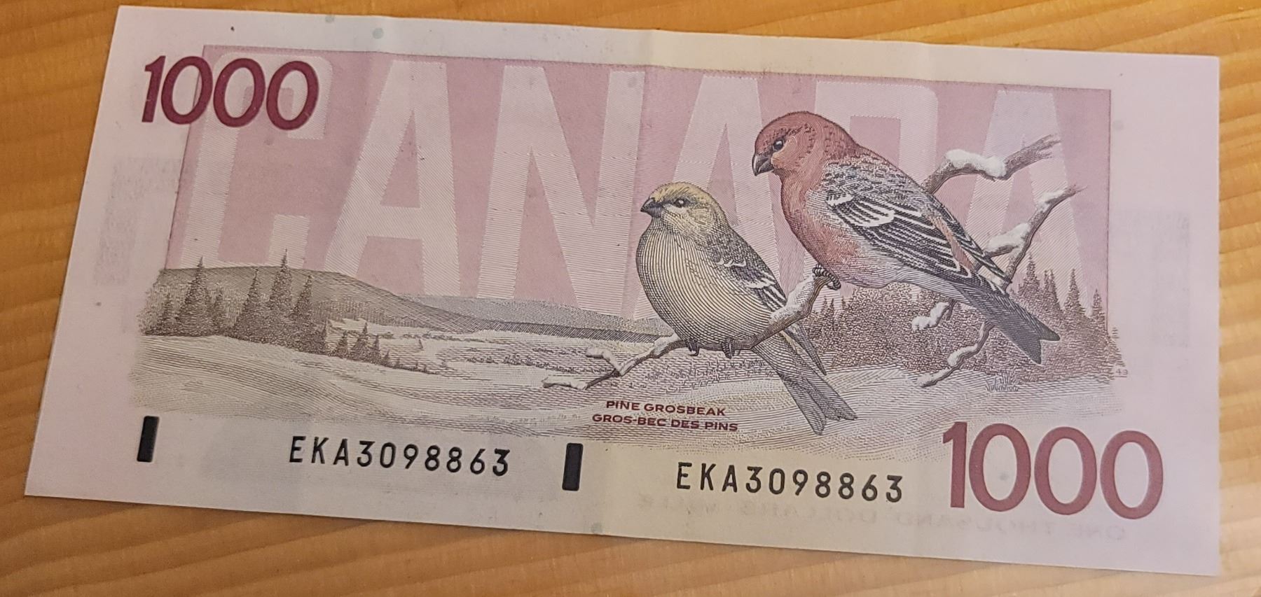 Clear, crisp and uncirculated. Serial number EKA3098863. Signed by Bonin and Thiessen.