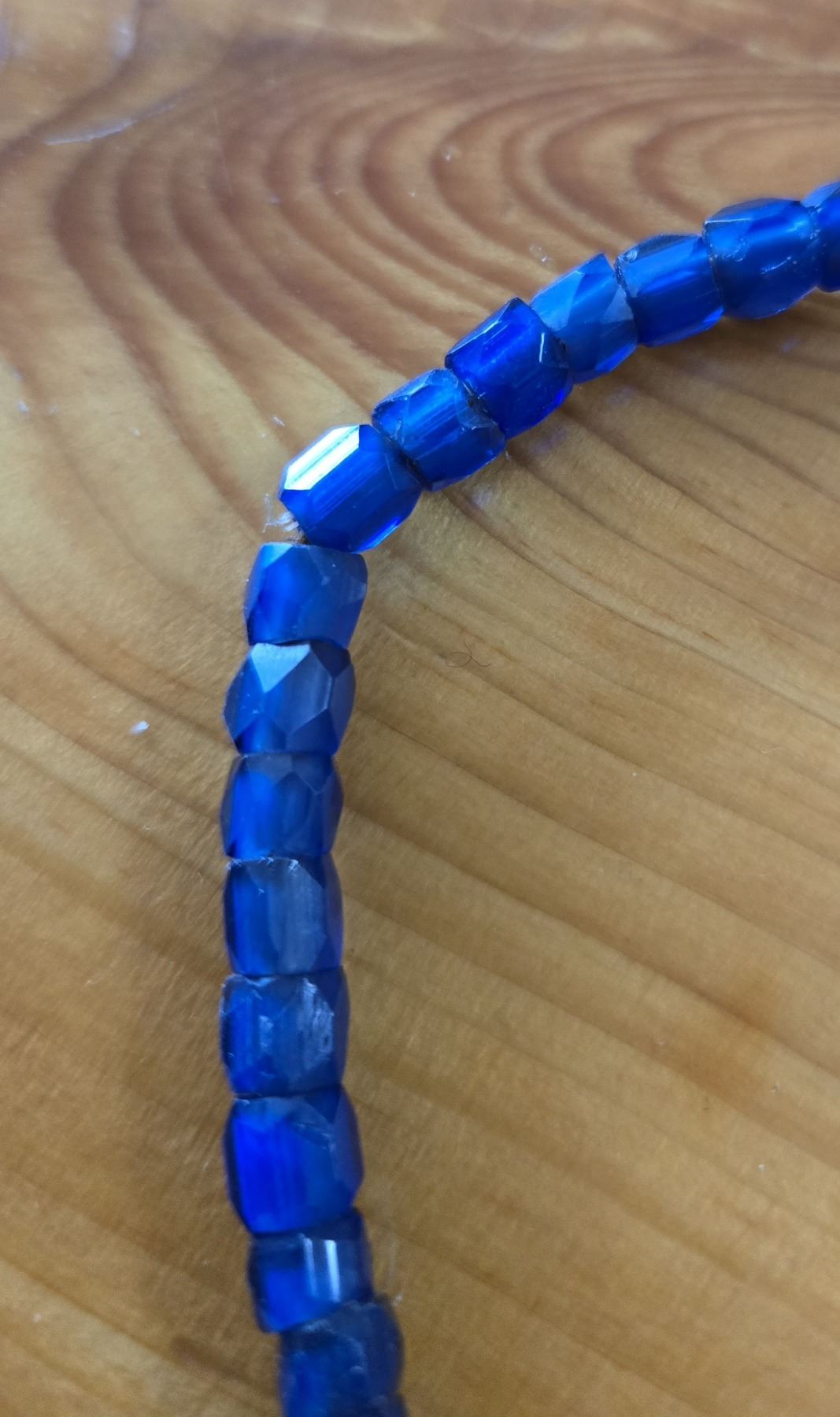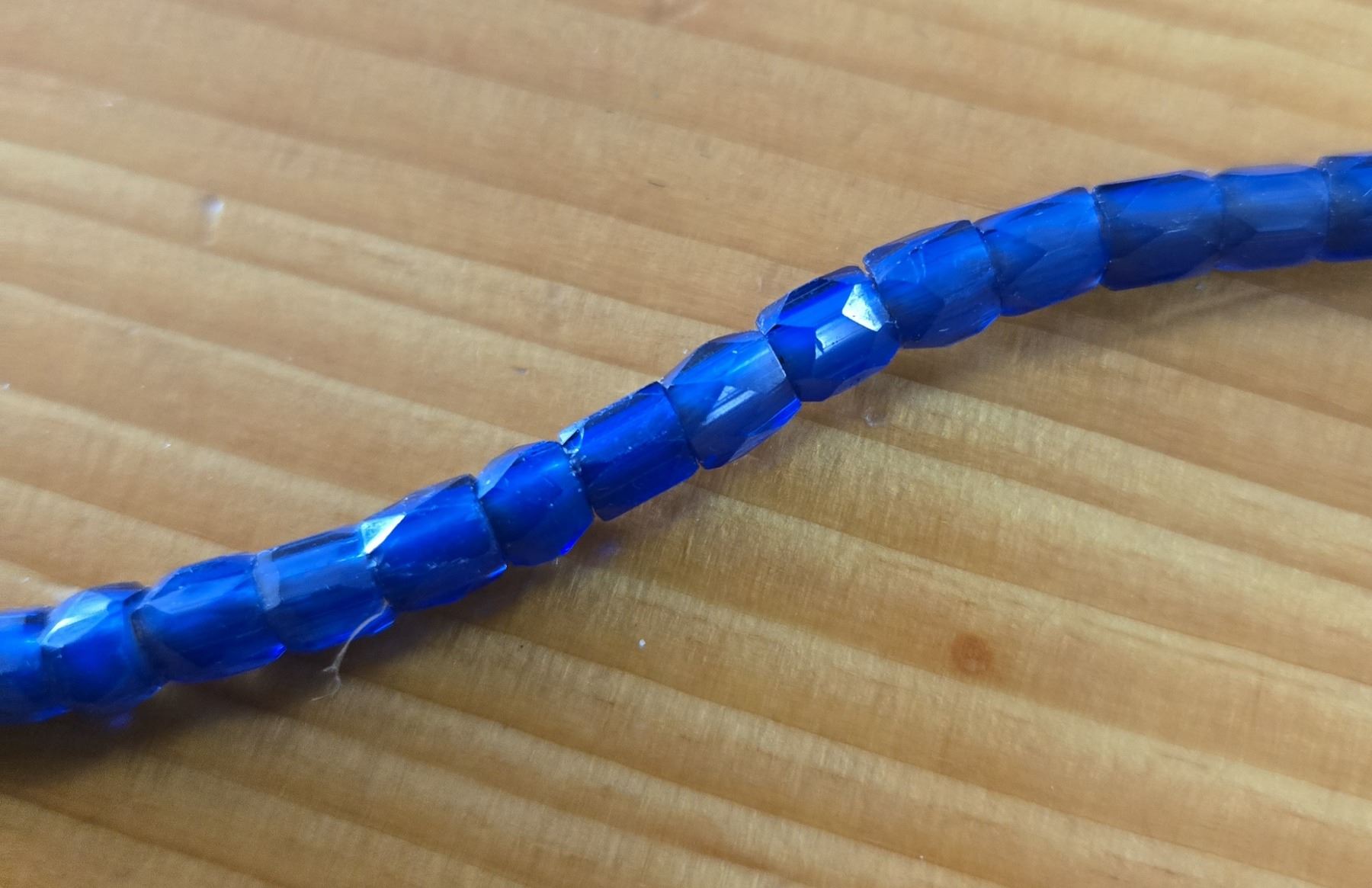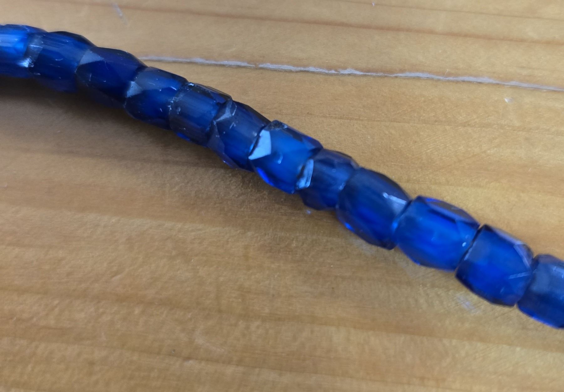 One 24” Strand of Antique Russia Blue Trade Beads. Unusual small size and beads measure between 6 to 7 mm in diameter.