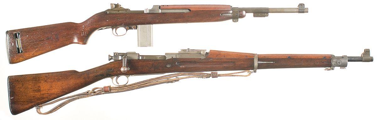 B) Late production RIA rifle with top barrel marked "RIA/bomb/5-22". Rebuilt with mixed parts and Remington barrel bands. Circled "P" proof behind trigger guard and complete with brown military-style leather sling.