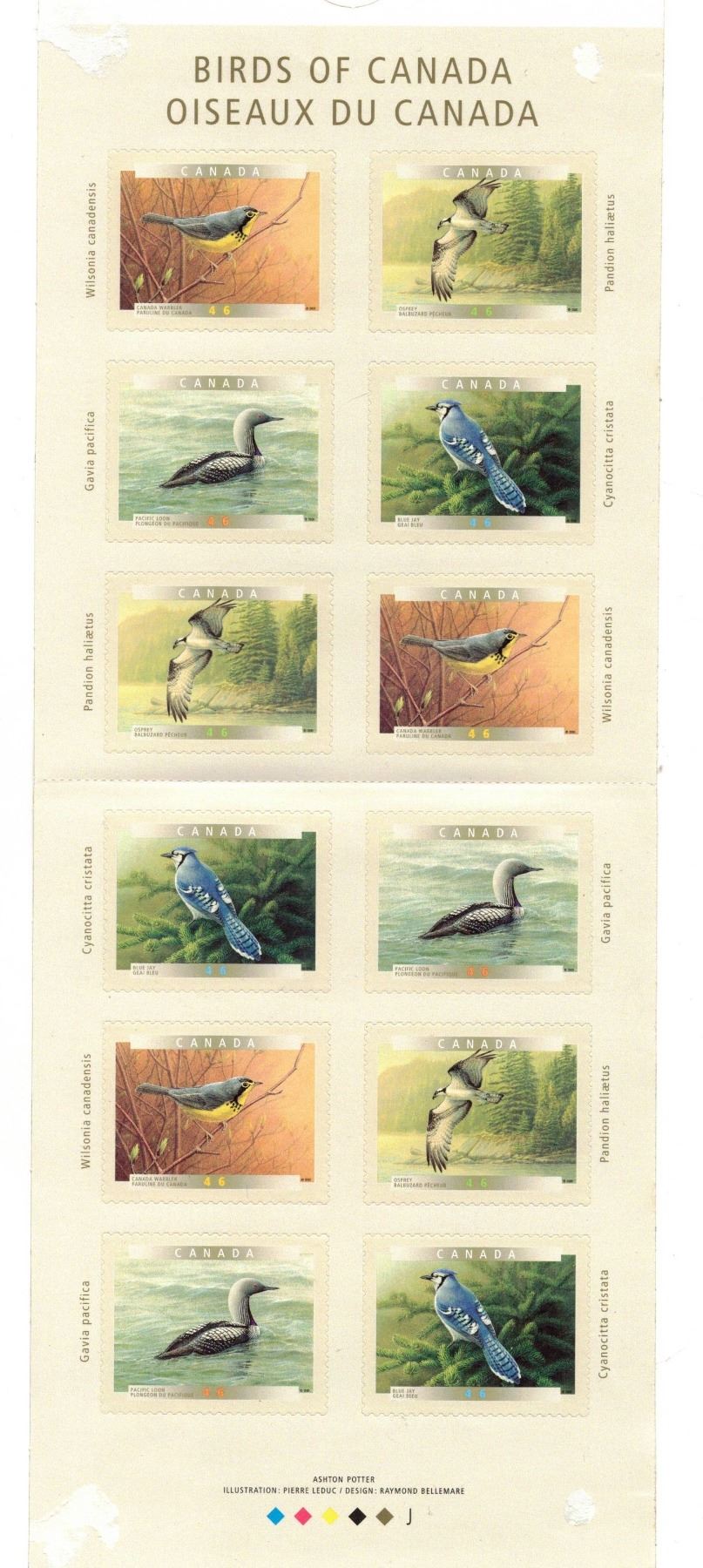 Canada #BK225b (SG#SB238) $5.52 2000 Birds of Canada Booklet NF/HB