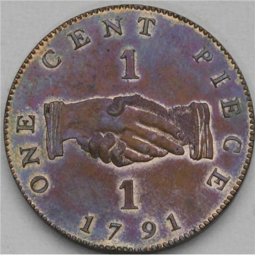 One Cent bronze 1791, KM1, Uncirculated with multi-hued One Cent bronze 1791,