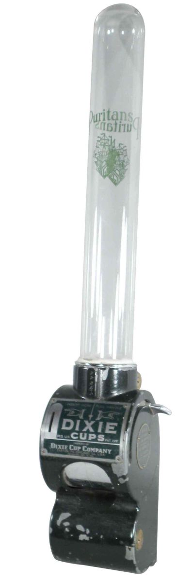 One Cent coin operated, Dixie Cup Dispenser. Dixie Cup Company, Chicago Ill. Original glass globe, comes with key. Some paint loss to the base otherwise excellent condition. 4 1/2 X 28 X 5 1/4 inches.