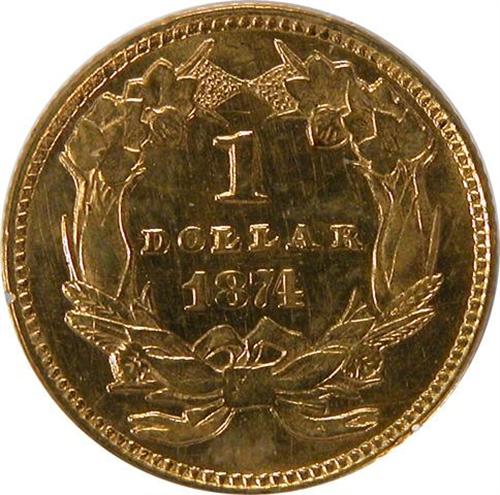 One Dollar 1874 PCGS MS-60. Well struck and nicely lustrous