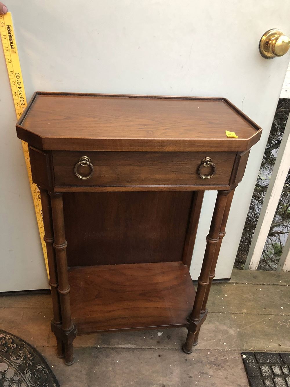 One Drawer Hall/Night Table Mahogany measures approx. 11 inches deep, 19 inches wide, 29 inches tall. This is being sold to benefit St. Jude Children's Research Hospital.
