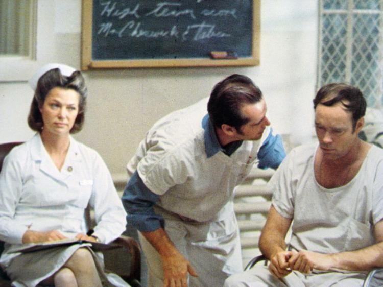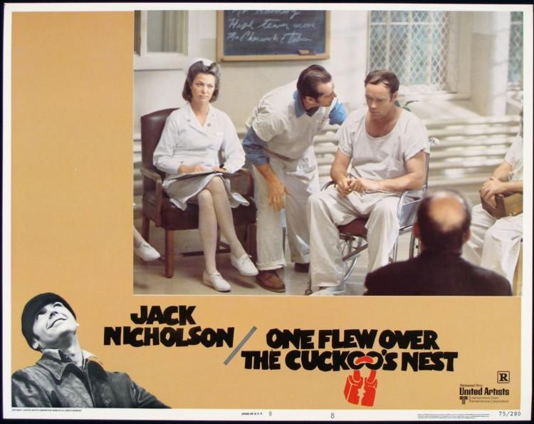 Here is an original lobby card from the 1975 movie "One Flew Over the Cuckoo's Nest." There is the realization in this scene that everyone there is crazy. Size: 14 x 11 inches Condition: Excellent