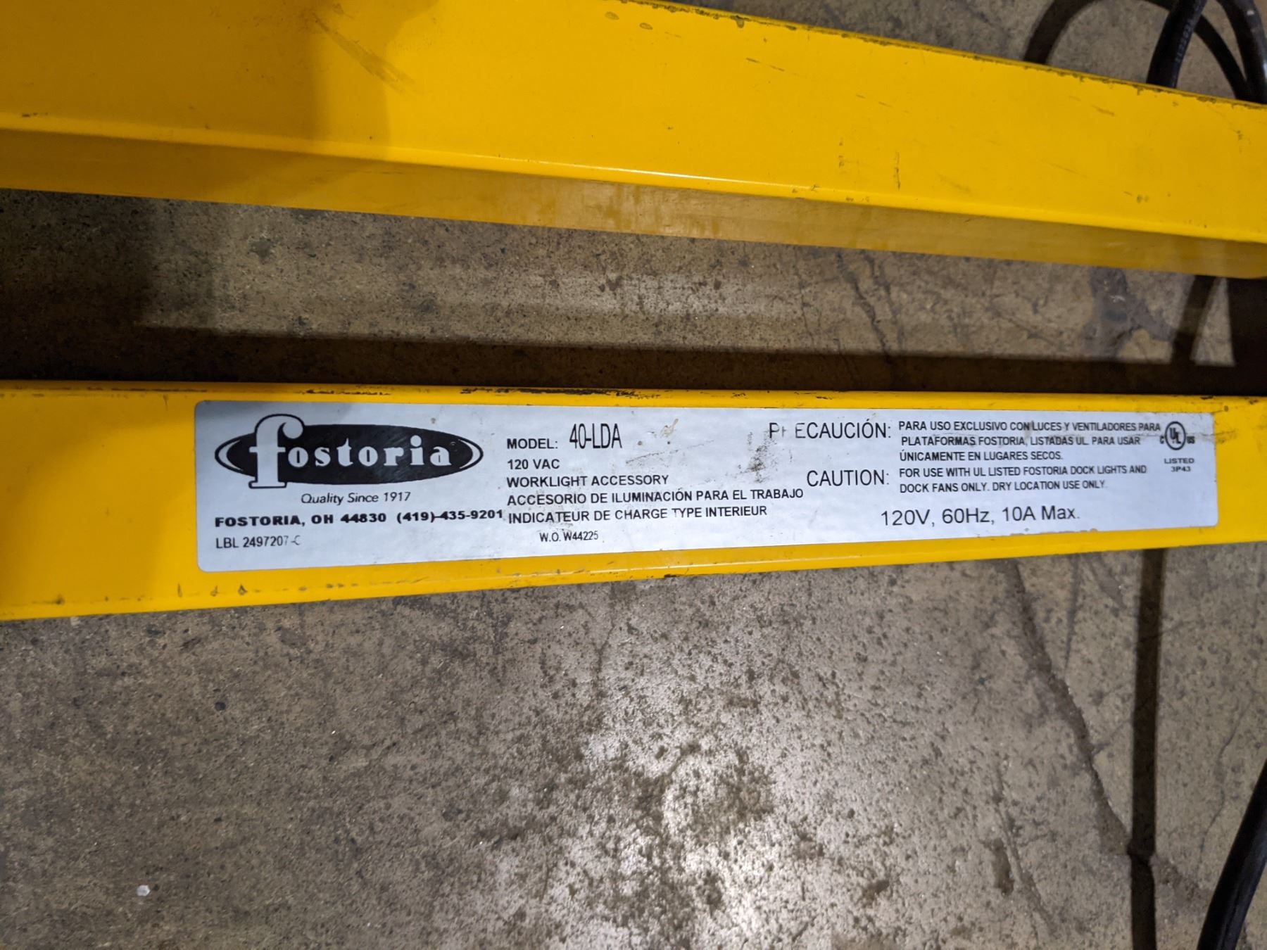 One Fostoria Phoenix dock light - yellow swing on work light w/LED bulbs