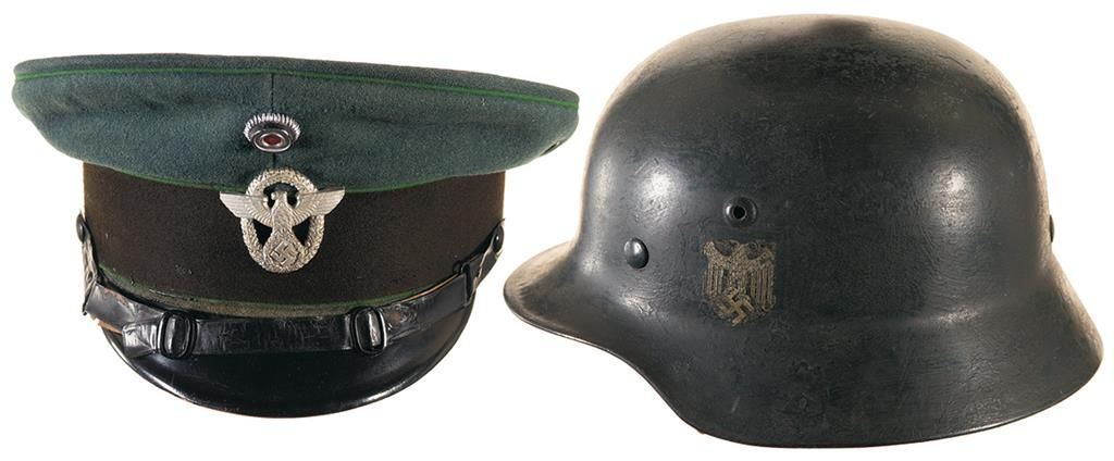 1 German Field Police NCO Visor Hat and 1 German Army M42 Helmet.