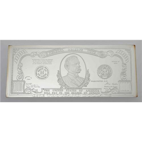 <B>One Half Troy Pound of .999+ Silver</B></I> in the form of a $1000 1928 St. Louis FRN in <B>Proof.</B></I>