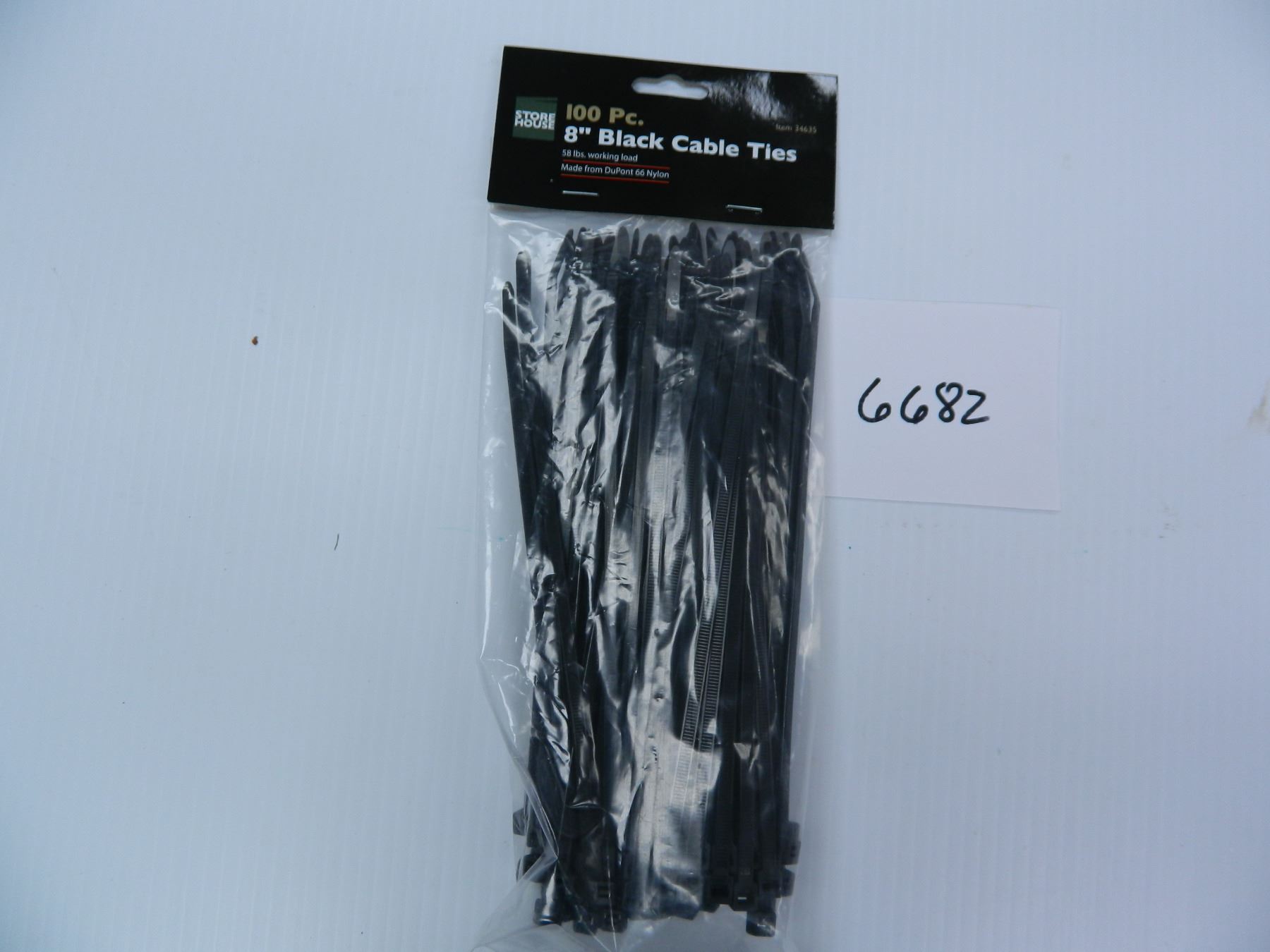 One Hundred (100) 8" Black Cable Ties, 58 lb working load, Made from Dupont 66 Nylon.