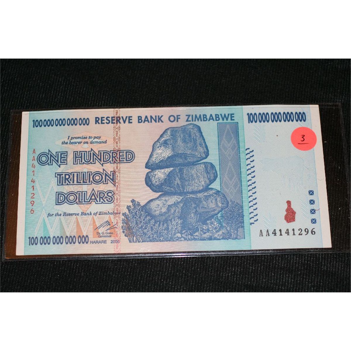 One Hundred Trillion Dollar Bill from Zimbabwe