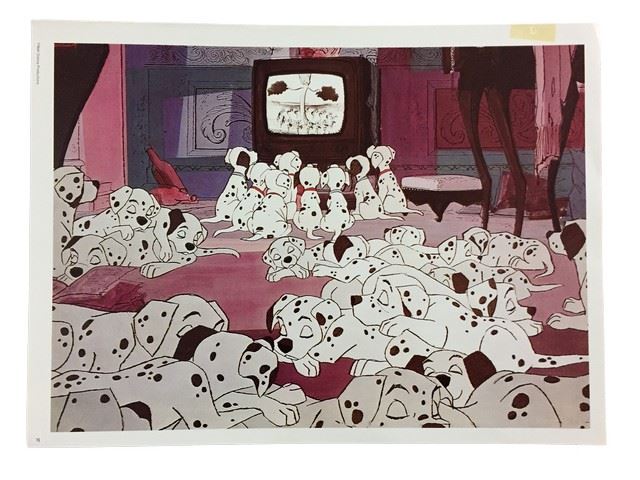 One Hundred and One Dalmatians (Walt Disney, 1961). Vintage Litho Photo of the Dalmatians napping and watching television. There minor marks and tape residue. Near Mint. (14" X 11").