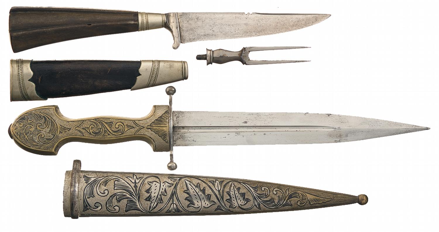 One Knife/ Fork Combo and One Caucasian Dagger, Both with Sheaths