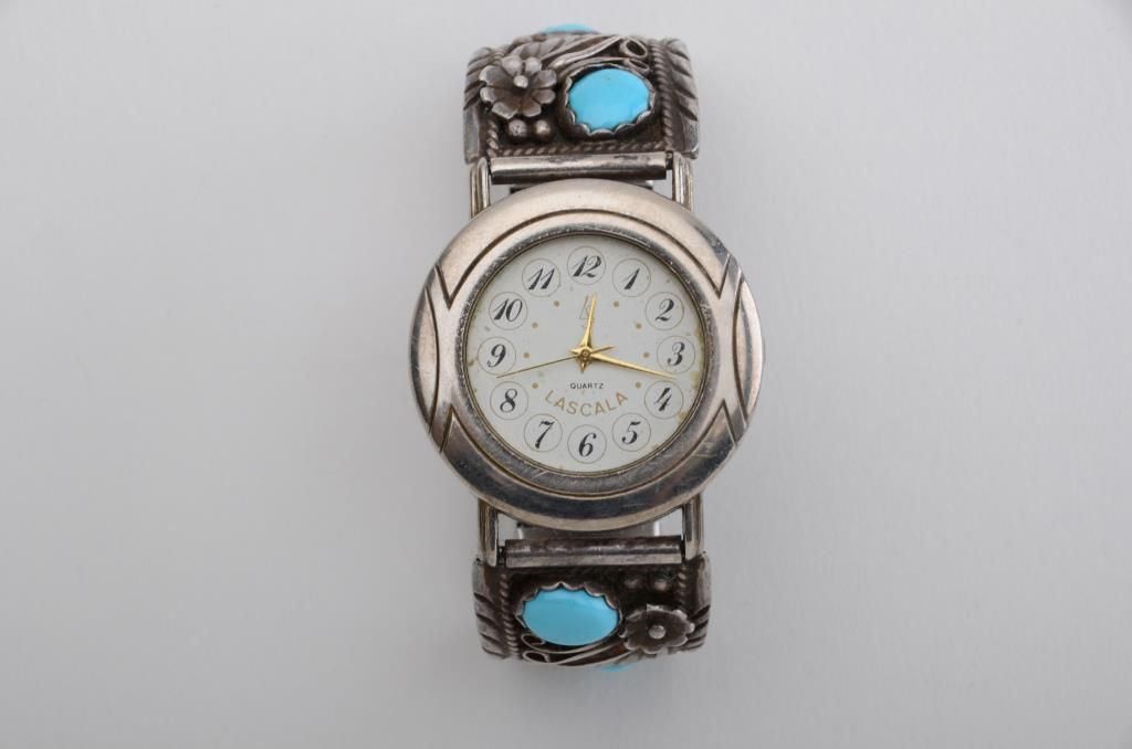 One La Scala wrist watch with a custom designed and signed sterling silver band set with fine oval turquoise Est.:$150-$200