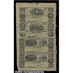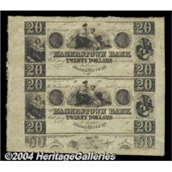 One Maryland & Two Ohio Uncut Sheets.Hagerstown, MD- Hagerstown Bank $20-$20 18_ G52-G52 CUMunroe Falls, OH- Munroe Falls Manufacturing Co. $5-$2-$1-$1 18__ XF, folds between the notes, ink erosionWorthington, OH- Ezra Griswold $2-$2-$2 18_ CU, folds between the notesThe Hagerstown Bank sheet has the look of a printer's trial run as a portion of a $50 G56 is shown. 3 sheets <BR><BR><B>Important notice:</B> Heritage usually auctions material at the rate of 200-250 lots per hour. On some occasions eBay Live bid software or the Internet may not be able to keep up with the pace of the auction. We recommend placing a realistic absentee bid now as insurance to avoid disappointment. Occasionally the auctioneer may eliminate or reject an eBay Live bid, and the auctioneer may also reopen a lot after the close of the eBay live bidding (usually because we missed an audience bid), and may reject your bid even if it shows you as the winning bidder. By bidding via eBay Live, you agree that Heritage may award the lot to another bidder at its sole discretion under the circumstances described above or any other reasonable circumstances. Since eBay bids are not shown to us until we open the lot on the floor, we treat those bids just like floor bids. In most cases the floor responds before the eBay bid is presented to us, due to Internet lag time, so for consistency we have made it a policy that floor bids are always considered first over tie eBay live bids. Also please note that all Heritage lots purchased through eBay Live carry a 20% Buyer's Premium. Please make sure you read the Terms and Conditions before you bid. <BR><BR><B>IMPORTANT ANNOUNCEMENT ABOUT RESERVES:</B> Heritage now divulges all reserves on its web site 7 days before every auction. If you want to know whether the reserve on this lot has been met, and if not, what the reserve amount is, please visit this lot page on the HeritageCoin.com web site, or email: bid@HeritageGalleries.com