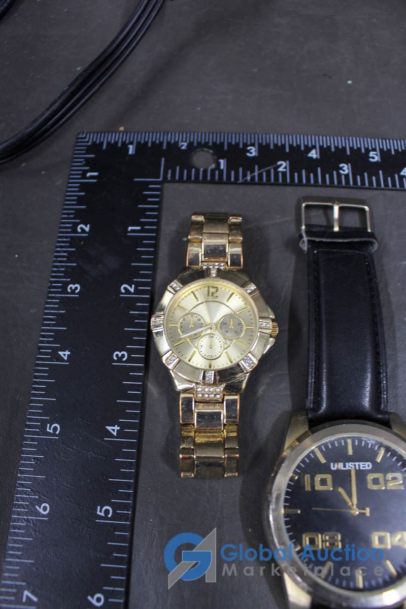 Mens "Unlisted" Large Face Watch, Ladies Gold With Crystals