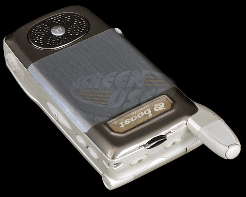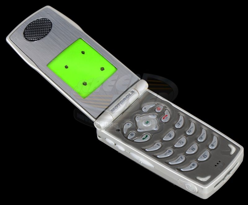 (Warner Bros. Pictures , 2008) This cell phone was acquired by the production for use by Shannyn Sossamon as "Beth Raymond". The Motorola cell phone has silver tape applied to the front and back and features a green screen for post production reference.