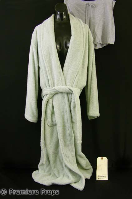 "Monster" Ellie's (Ariel Winter) pale gray-green "Restoration Hardware" bathrobe (* stained around collar) (size S/M). Heather gray "American Apparel" Classic Girl shorts (size M/OS). Includes wardrobe tag / screen worn