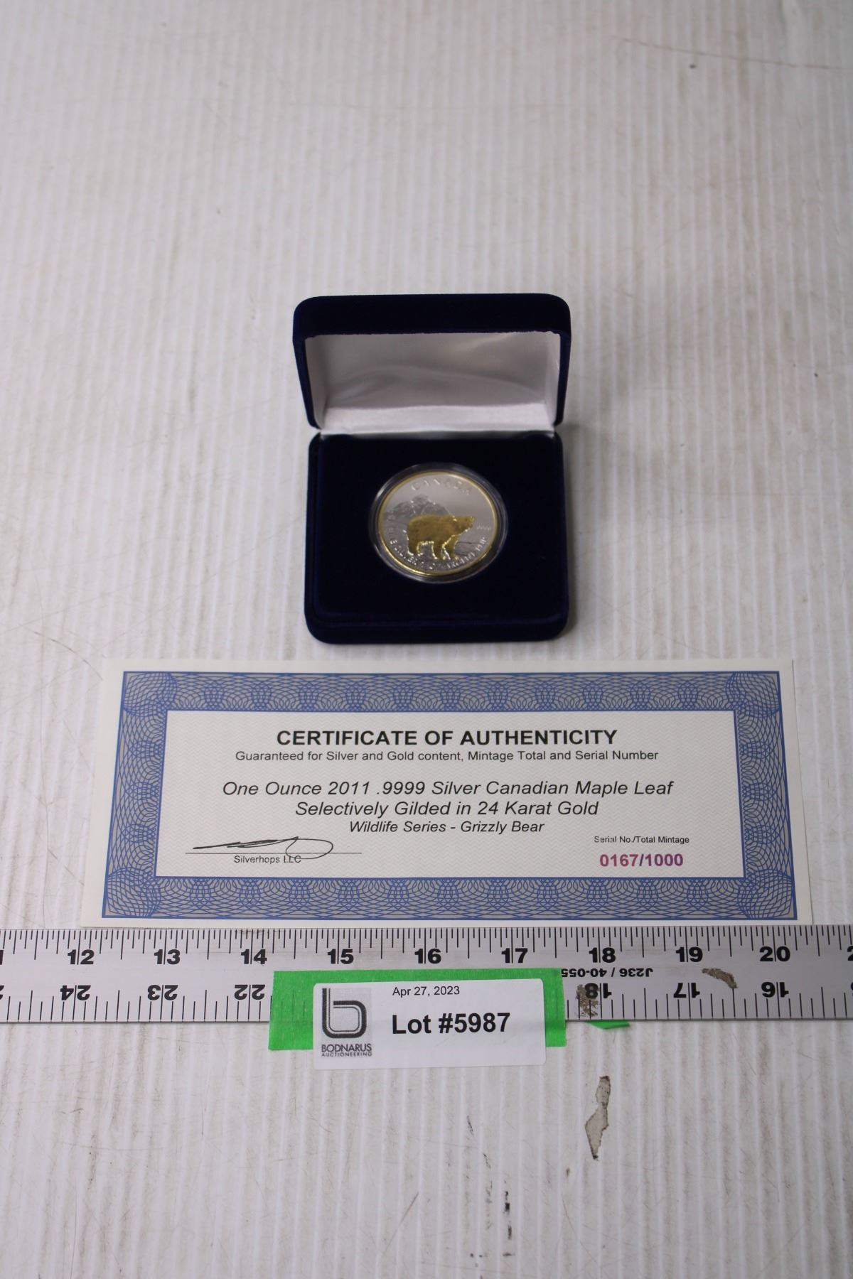 One Ounce 2011 .9999 Silver Canadian Maple Leaf Coin - Grizzly Bear